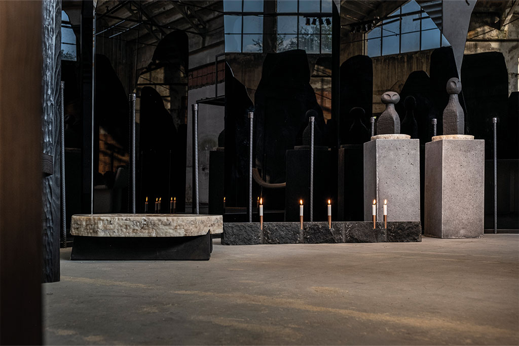 The other duo of « magicians », Studiopepe, has imagined a collection of furniture surrounded by a halo of mystery with the Galerie Philia. Presented through an immersive installation, it explores the notion of sacredness in its anthropological and historical complexity, as well as the strength of the symbols given to objects.