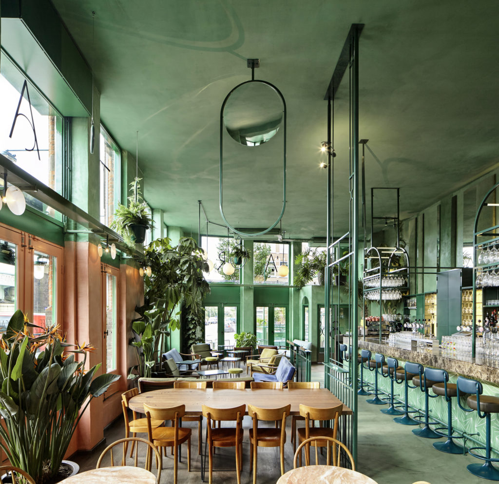 RESTAURANT • Après la jungle amazonienne du bar Botanique et la côte solaire de Volare, le studio Modijefsky continue d’égrener ses atmosphères si particulières à Amsterdam avec Moos, le dernier né de la famille Goudvisch.