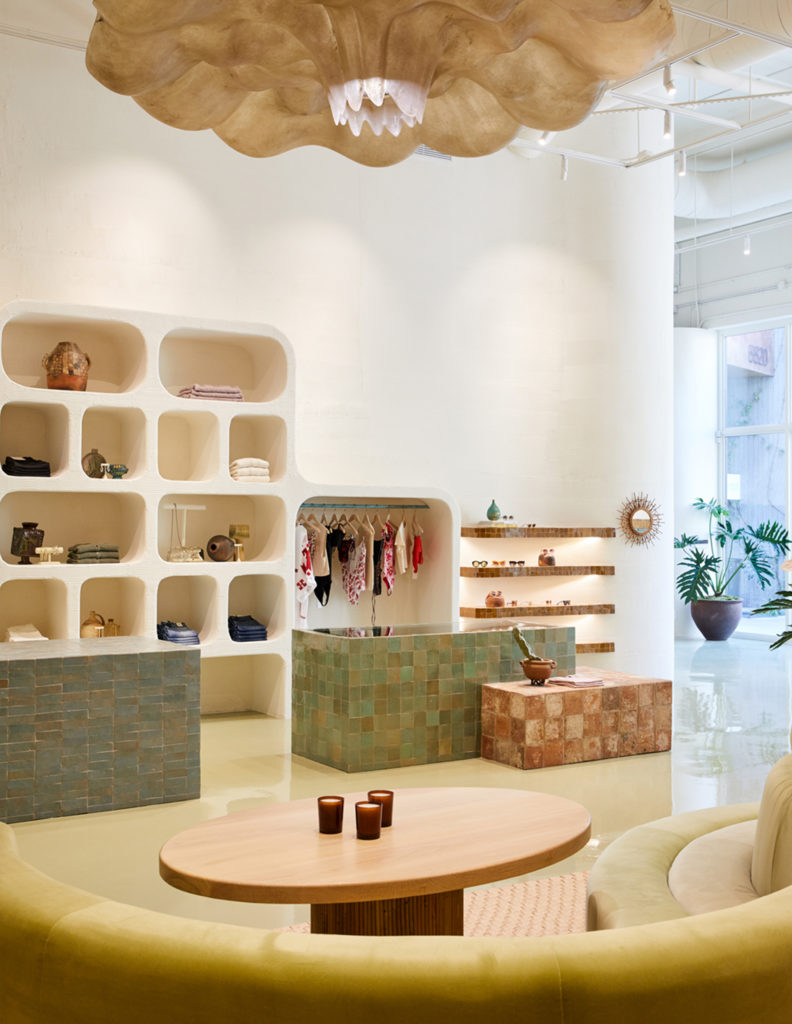 Animé par la beauté des magasins qu’ils visitaient avec leur grand-mère durant leur enfance, le duo de frère et sœur Camilla Freeman-Topper et Marc Freeman a fait appel au cabinet d’architectes d’intérieur basé à Sydney Akin Atelier afin de créer un flagship à l’image de leur marque : délicat, intime et sensiblement tactile.