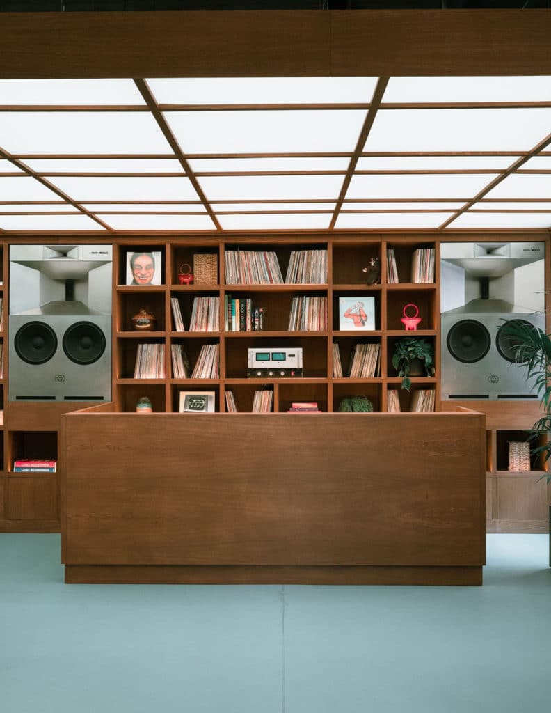 Focus Focus ne se limite pas à la vue. L’adresse convoque aussi l’ouïe à travers une série de sessions sonores et événements exclusifs pour des moments d’écoute dans un salon mi Space Age mi fifties. Matthieu Astruc a collaboré avec le designer Mateo Garcia pour concevoir une installation sonore unique en France : un sound system inspiré du matériel de laboratoire et des amplificateurs vintage haut de gamme, aux façades amovibles en aluminium. Un lieu où l’on vient autant soigner son regard, qu’écouter ou tout simplement contempler.