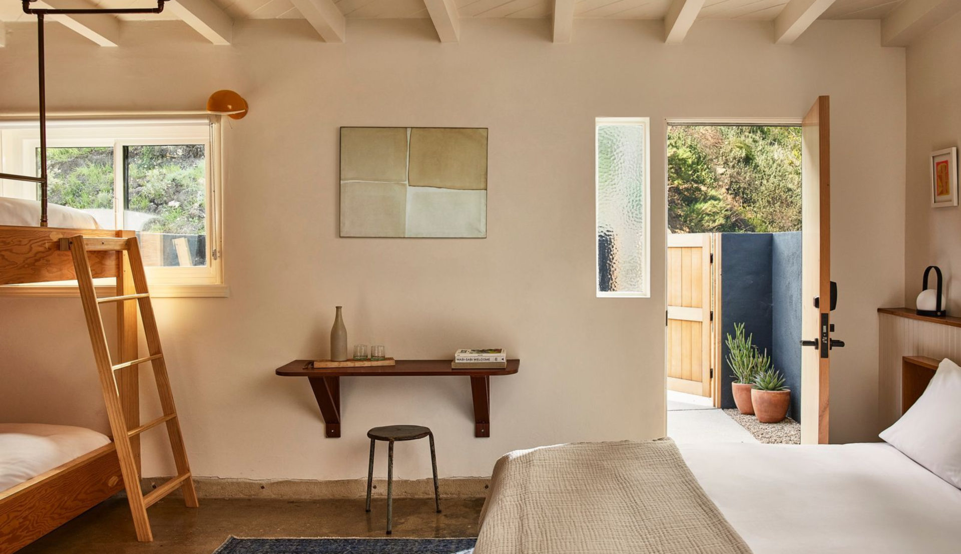 Decades later, June Malibu hasn’t lost an ounce of its California cool. Set against its signature vintage green brick façade, the hotel stands as a modern tribute to Malibu’s mythic past. Thirteen retro-ethereal bungalows, an intimate pool, a thoughtfully curated reception, and a sun-drenched terrace. And everywhere, nature.