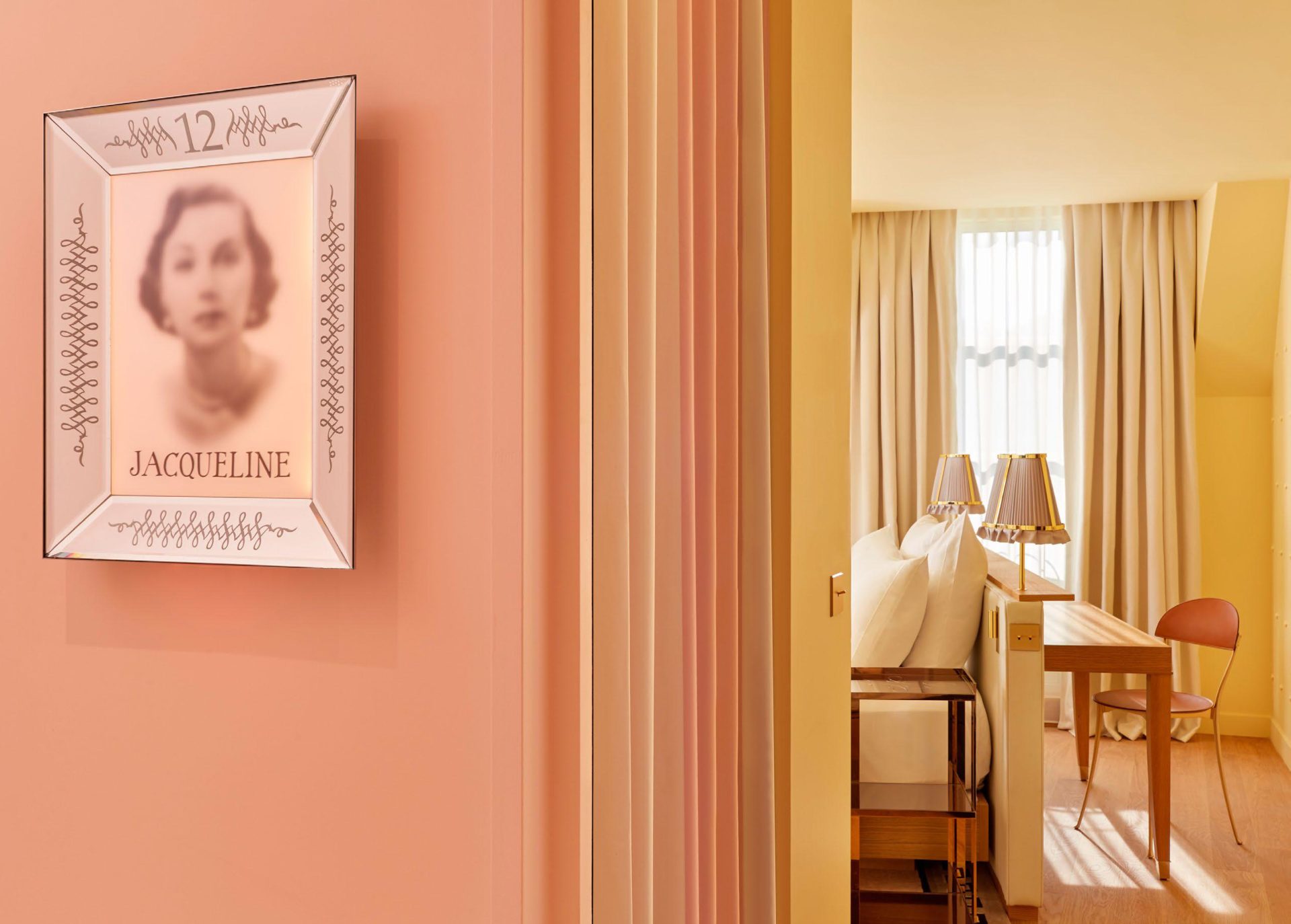 « Afin de baptiser chaque chambre, nous avons sélectionné les prénoms de femmes les plus attribués à cette époque. » Des prénoms comme des héroïnes d’un roman de Patrick Modiano, que le designer cite comme inspiration pour le décor de cet écrin « où les élégantes maquillent leurs inquiétudes et s’étourdissent dans un romantisme fané… »