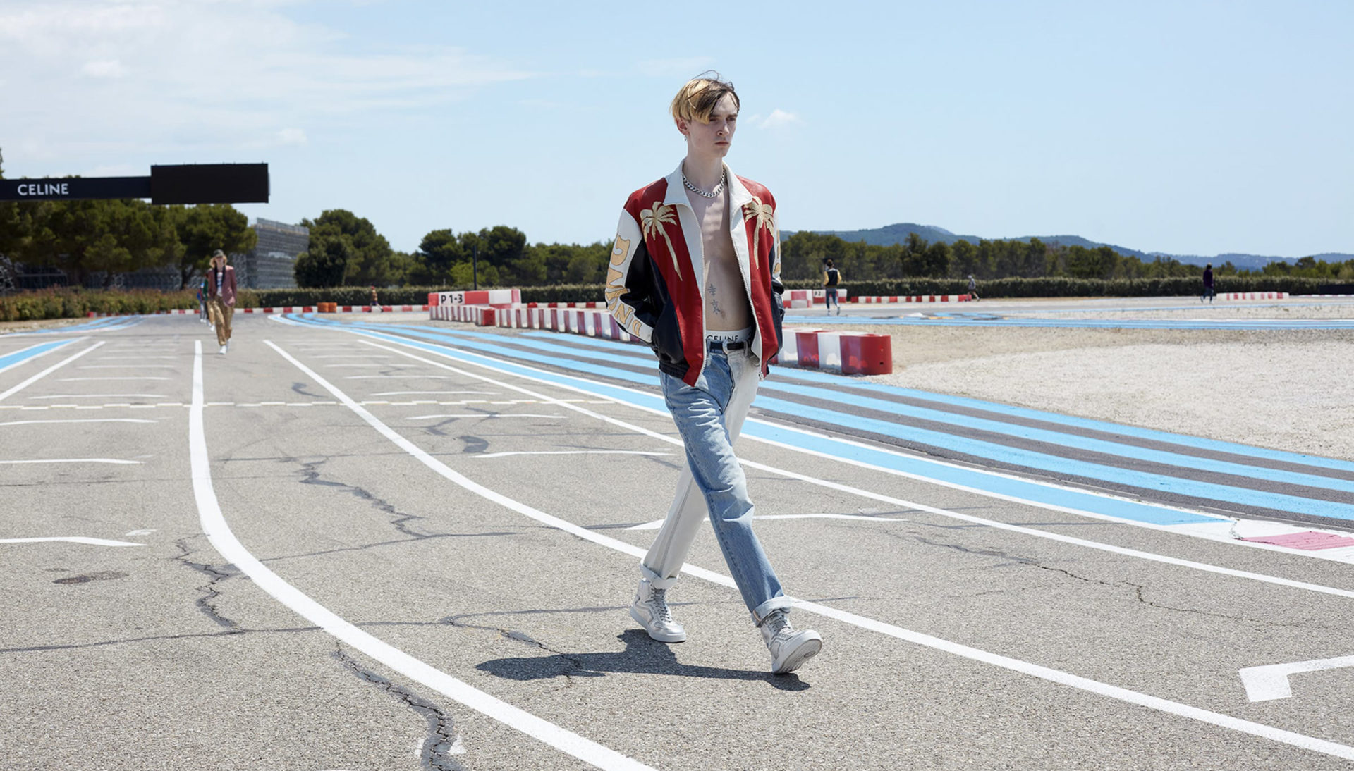Sur la grille, on voit également un lexique street se mêler à l’iconographie opulente de Monaco, ses casinos, ses palaces et son Grand Prix. En pole position : la marque parisienne de prêt-à-porter Casablanca avec sa collection automne-hiver 2021 qui assimile les coupes jogging contemporaines aux codes rétro des années 1960, avec d’anciennes monoplaces re-sponsorisées Casablanca en toile de fond.