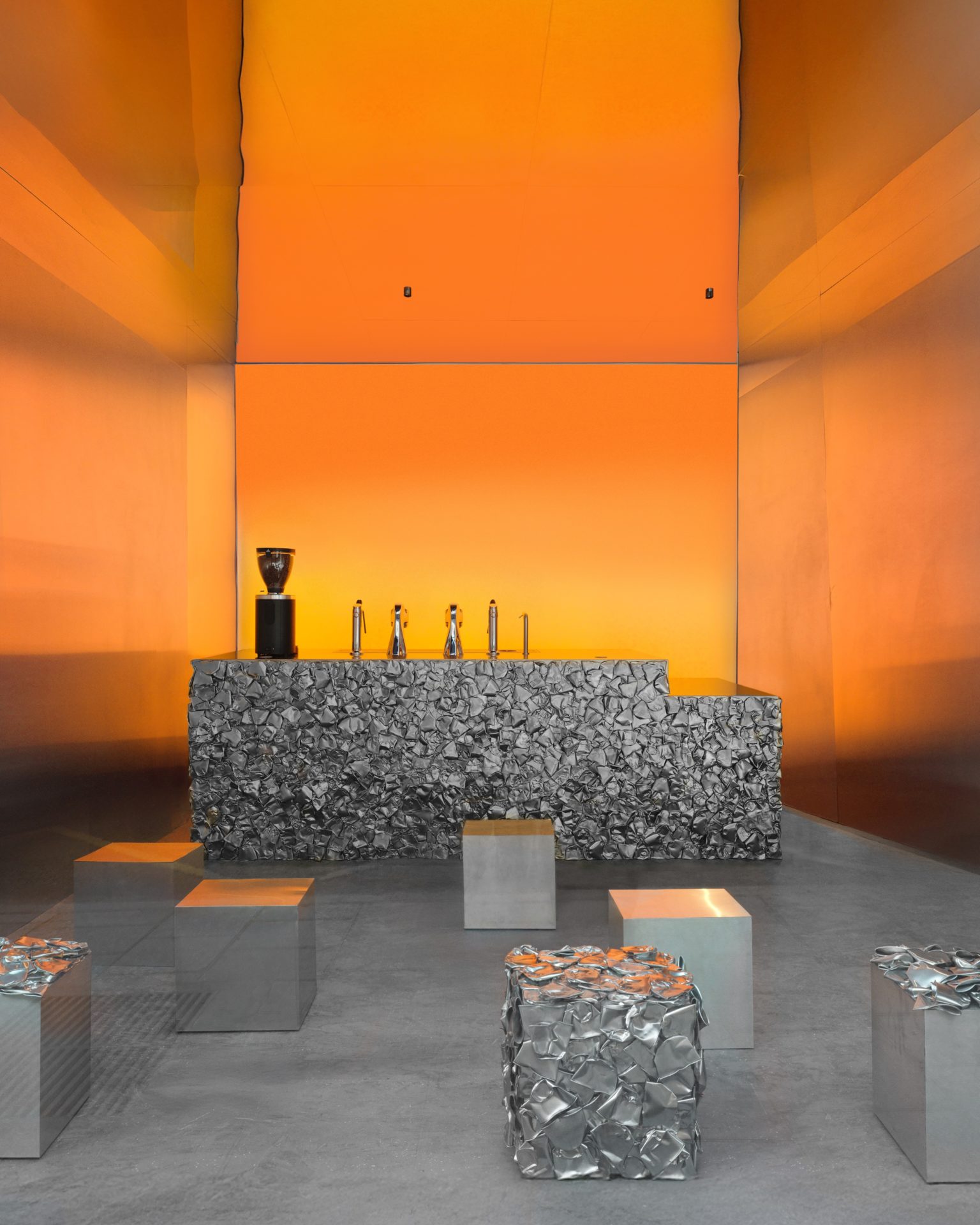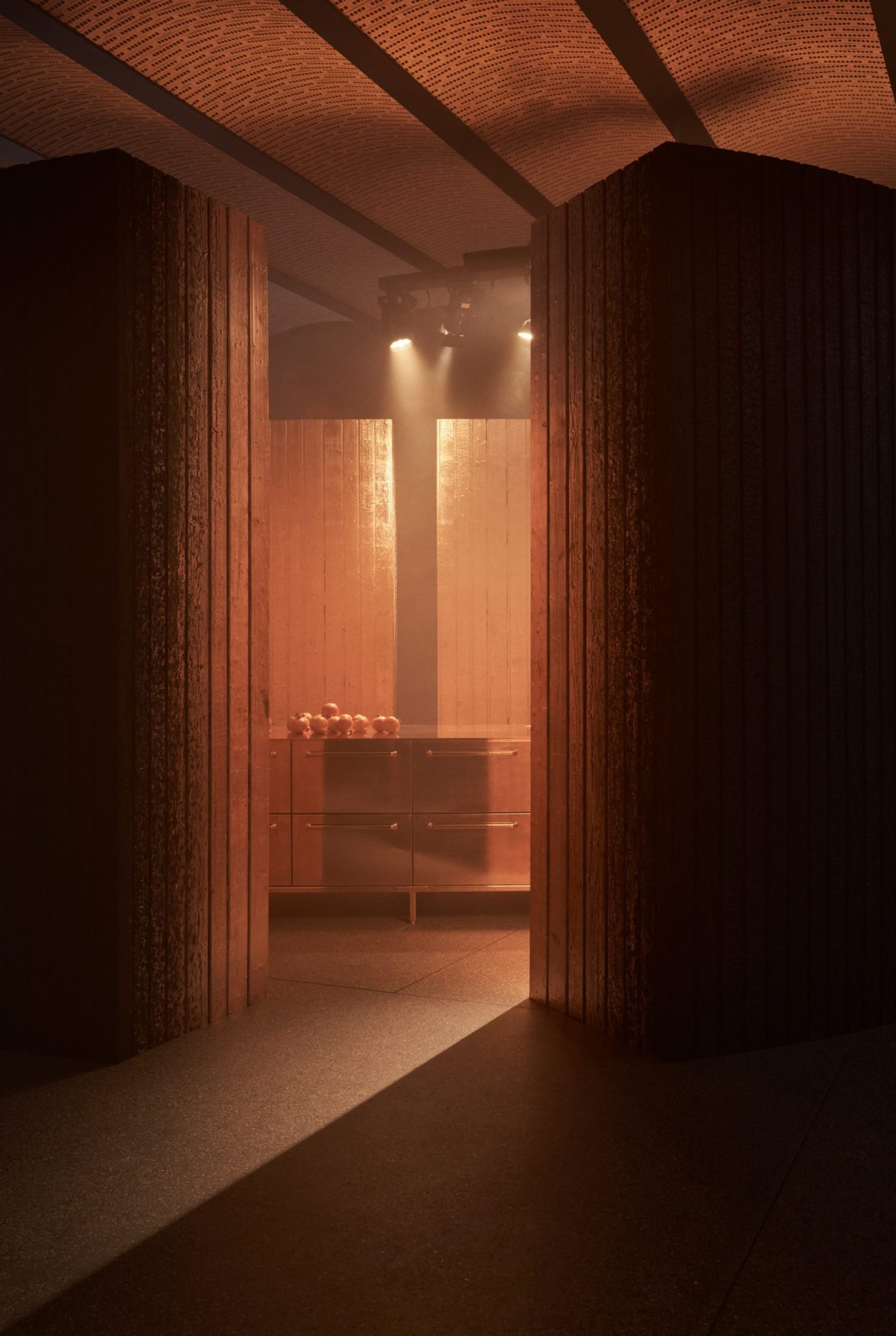Les scénographies crépusculaires sont partout. Chez Halo et café Nuances à Paris, Millo à Bucarest ou Ellipsis à Vancouver, mais aussi dans les wellness clubs comme Othership Flatiron à New York jusqu’à Arc Canary Wharf à Sydney, les dégradés rejouent minute après minute les étapes d’un coucher de soleil. Partout, la lumière décline, passant d’une lueur brûlante aux tons cuivrés. Dans les vestiaires (Saint Laurent, Chanel, Bottega Veneta, Isabel Marant) même réchauffement chromatique. Les tons sont tantôt flamboyants, tantôt sulfurisés, mais réchauffent à chaque fois les silhouettes automnales. Côté textile, notamment chez Madura, la lumière se love aussi dans des ambres bronzés, des éclats cuivrés qui prolongent l’heure dorée dans les intérieurs. Un coucher de soleil automnal à observer en moodboard.