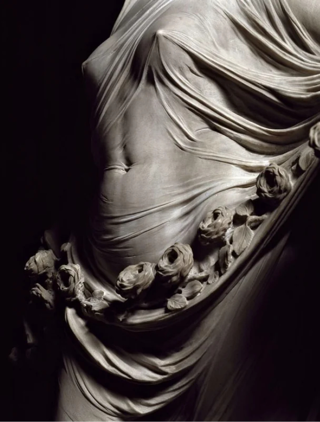 Avec LUX, Rosalía rejoue la figure de la femme sainte recherchant la délivrance derrière le voile. Elle convoque l’iconographie des Vierges voilées et des saintes sacrifiées, avec une esthétique qui rappelle les bustes baroques (Bernini, Corradini, Sanmartino…) où le drapé épouse la peau, révélant en cachant. Ici, le voile n’est plus symbole de soumission : il devient armure, manifeste d’une femme qui reprend la main sur son propre récit.