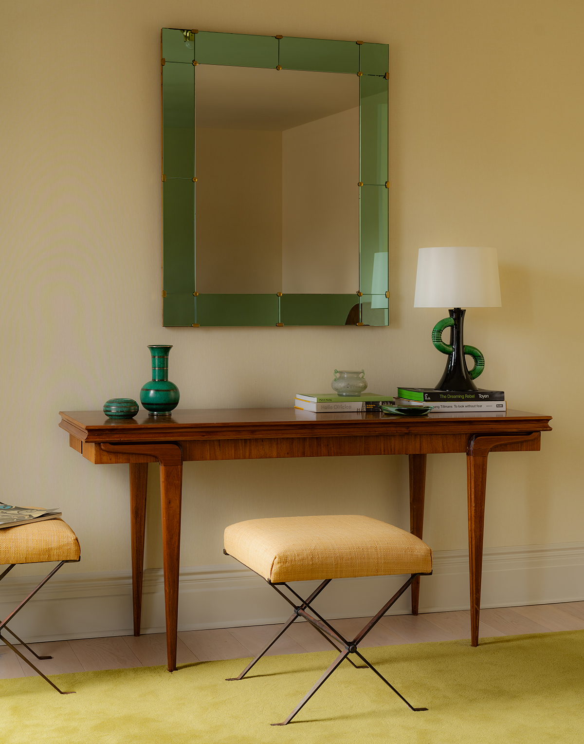 Annoncé comme la couleur de l’année par Chromatic®, la marque experte de la couleur du groupe PPG, le Vert Capulin a été sélectionné par les experts coloristes internationaux du groupe. Situé quelque part entre l’olive et le jaune citron, entre le minéral et le végétal, il réunit deux élans qu’on croit opposés : la tranquillité et la vitalité. Et c’est là que Vert Capulin est vraiment malin. En constant équilibre, il capture savamment les contraires. Une complémentarité qui se traduit en ubiquité dans la mode comme dans la décoration. Le Vert Capulin ouvre plusieurs portes, du modernisme tropical aux intérieurs feutrés des antiquaires et des ensembliers collectionneurs. Il épouse chaque matière en captant leurs reflets, et se déploie même en camaïeu précieux. Démonstration.