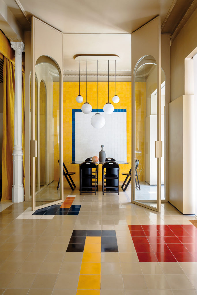 Là-bas, les notes de rouge laqué et les moquettes bleues passées sont un clin d’œil aux combinaisons de couleurs du designer et architecte hollandais Rietveld. Mais il n’est pas le seul à être mis à l’honneur. Dans ce bureau rêvé, les salles de réunions sont parsemées de pièces signées : la chaise Conoid de Nakashima, les lampes de Noguchi, ou encore les fauteuils en cannage de Jeanneret. Une curation savamment maitrisée.