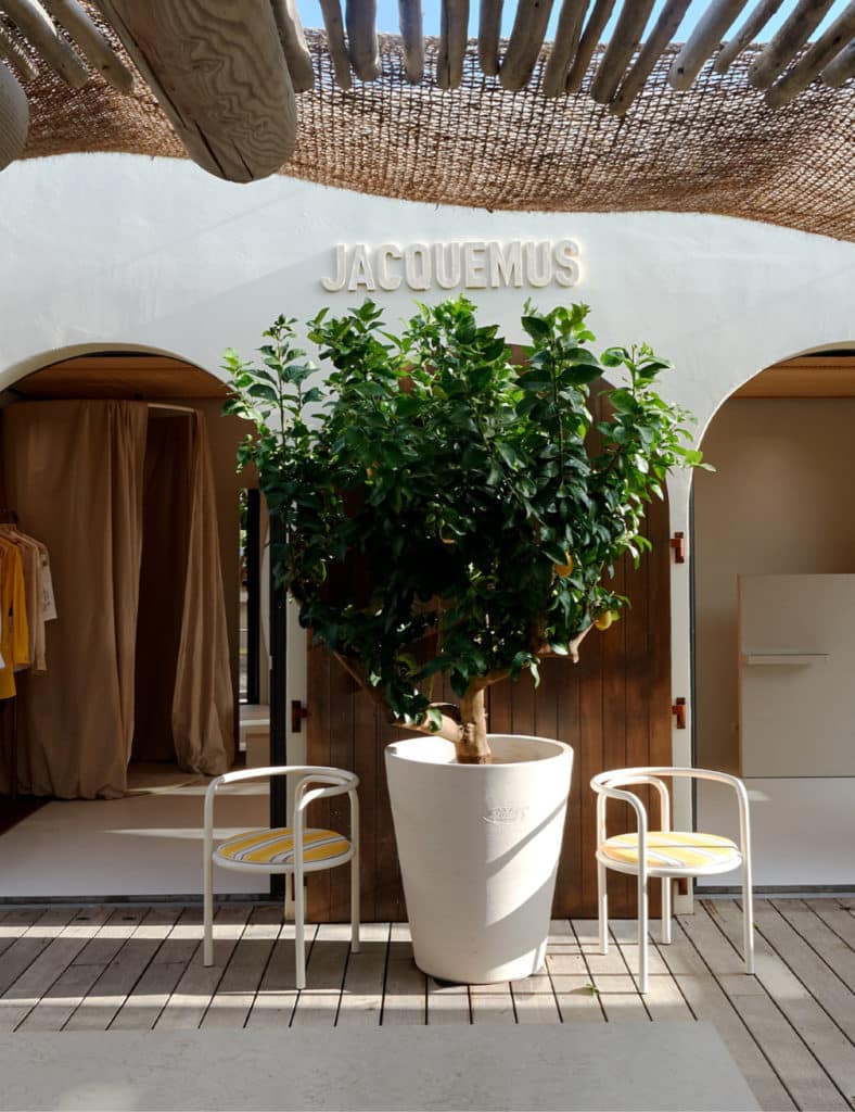 L’univers total de Jacquemus n’a échappé à personne ces dernières années. Outre son amour pour la mode, c’est aussi son goût pour l’art et le design qui ont façonné sa notoriété. Entre sa première boutique hyper minimaliste installée avenue Montaigne, sa collection d’Objets qui comprend une réédition du set Locus Solus de Gae Aulenti, et sa plage rayée à Saint-Tropez, on lui découvre, à chaque projet, des talents et des dons d’ubiquité. Des projets toujours reliés par un lexique très populaire, sensible et solaire. Cet été, c’est un restaurant-café qu’il a imaginé sur la mythique place des Lices, réputée pour son marché.