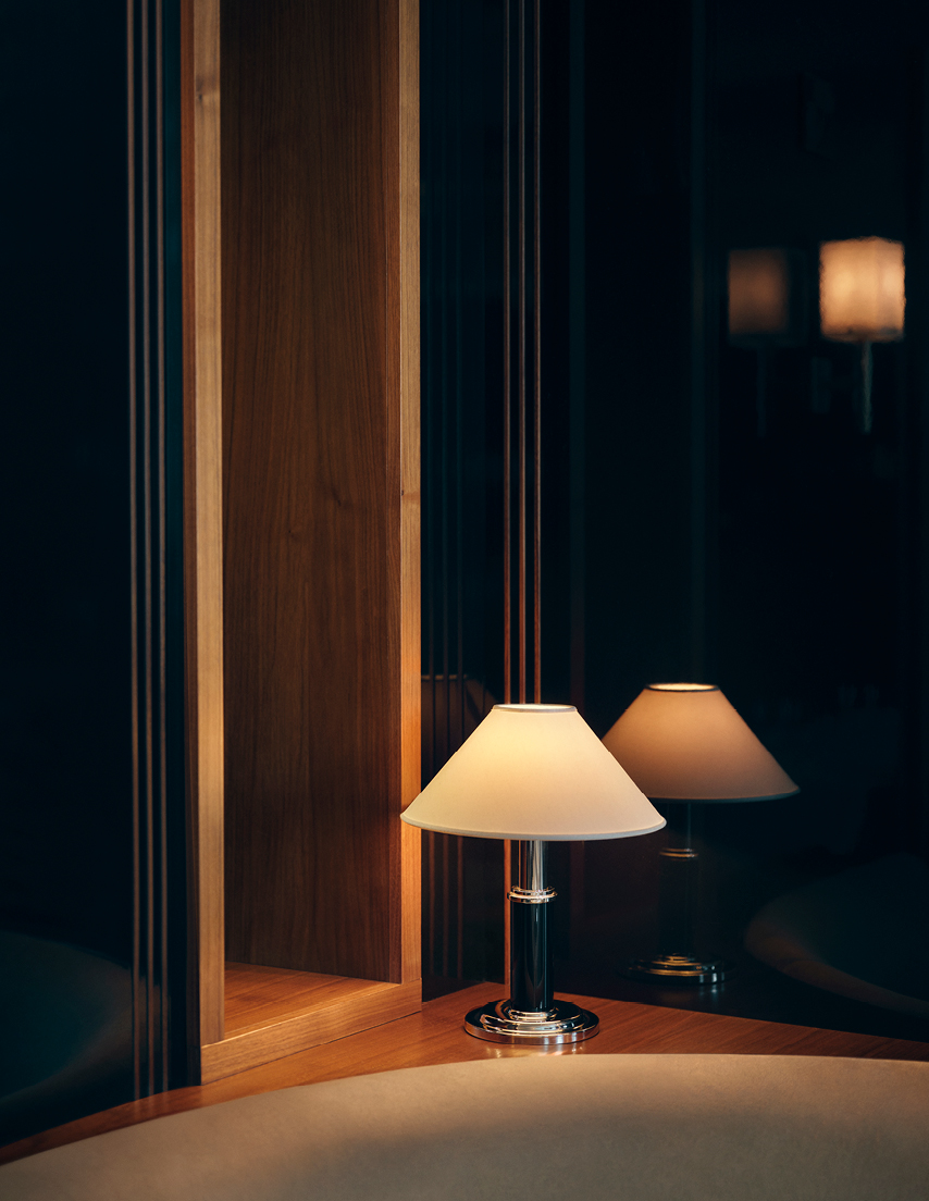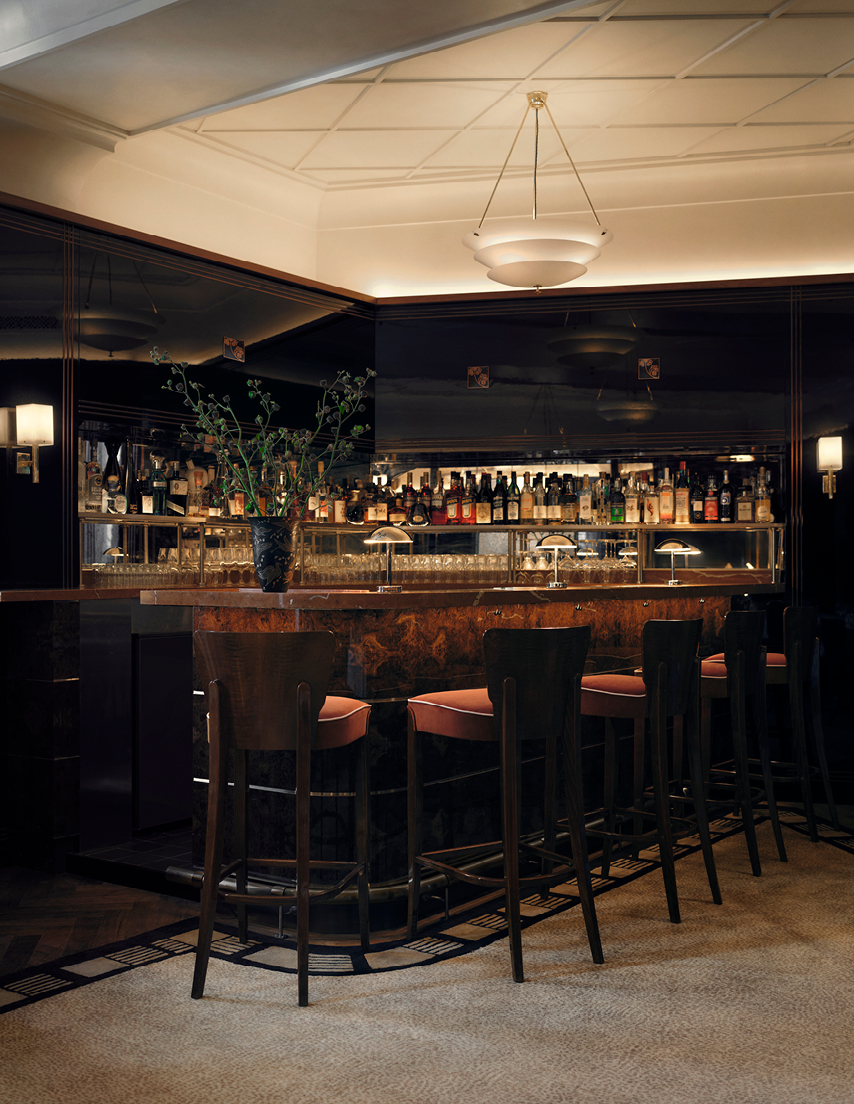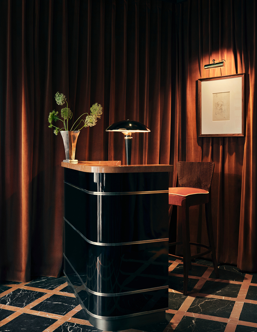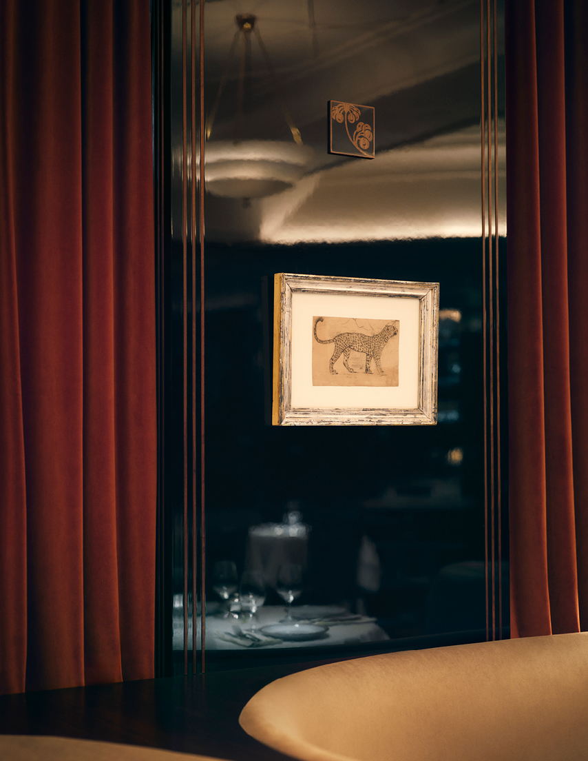 Une fois à l’intérieur, l’ambiance des bars de jazz de Brooklyn se glisse aux confins d’un bistrot parisien discret, où flotte un parfum de Godfather. Le décor, finement scorsesien, est signé Sarita Posada (l’architecte colombienne basée à New York à qui l’on doit les boutiques Aimé Léon Dore), épaulée par Lana Sawiris. Elle y distille des boiseries précieuses soulignées de filets en laiton, des banquettes en velours, des tables coiffées de nappes immaculées, des surfaces en marbre rouge italien, tapis et lampes Art déco… Cherry sur le gâteau : en fond, une bande-son jazz installe le ton, et plus tard, le hip-hop rétro prend le relais.