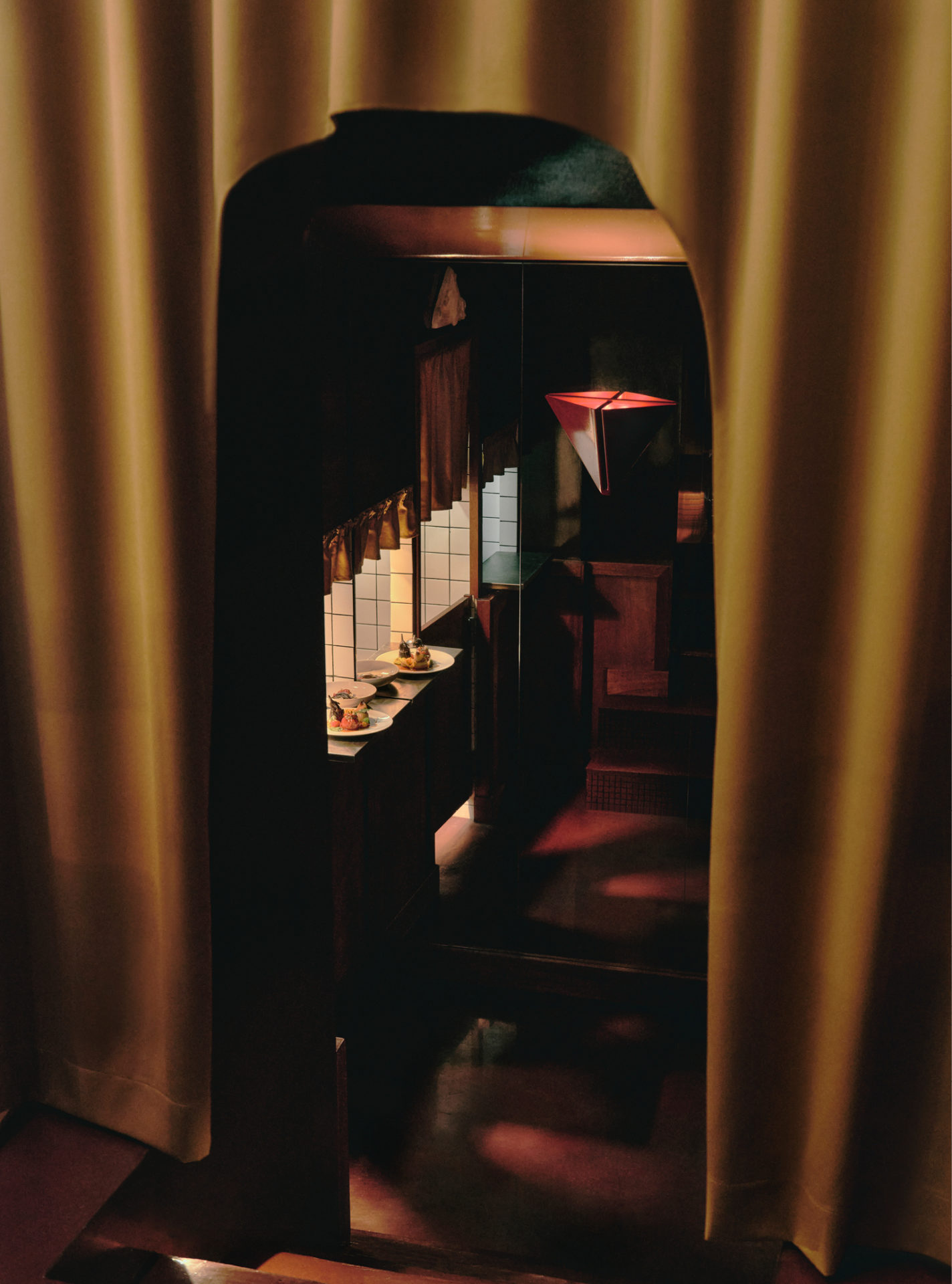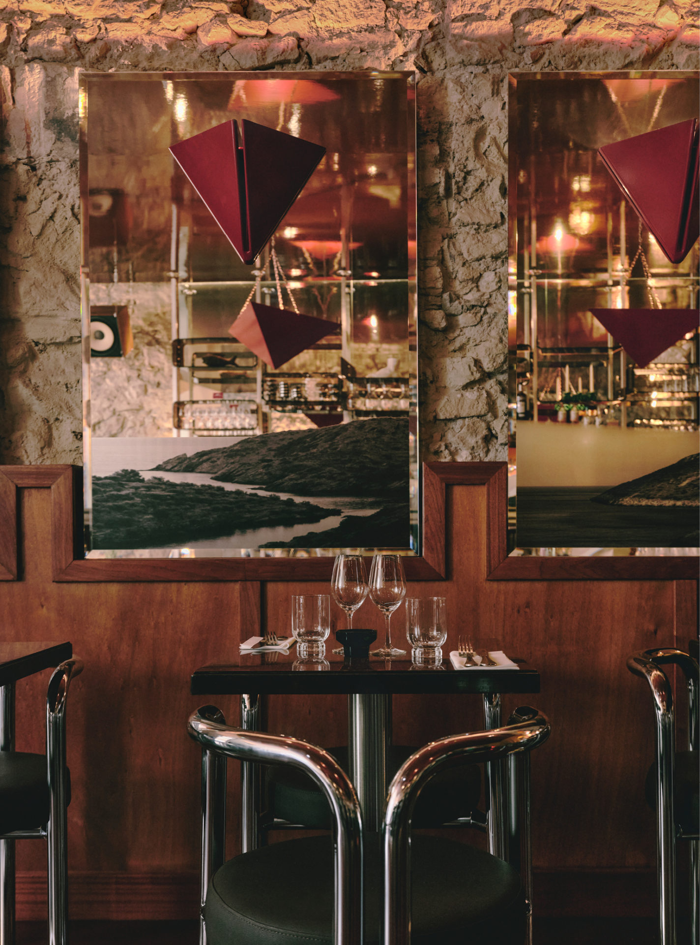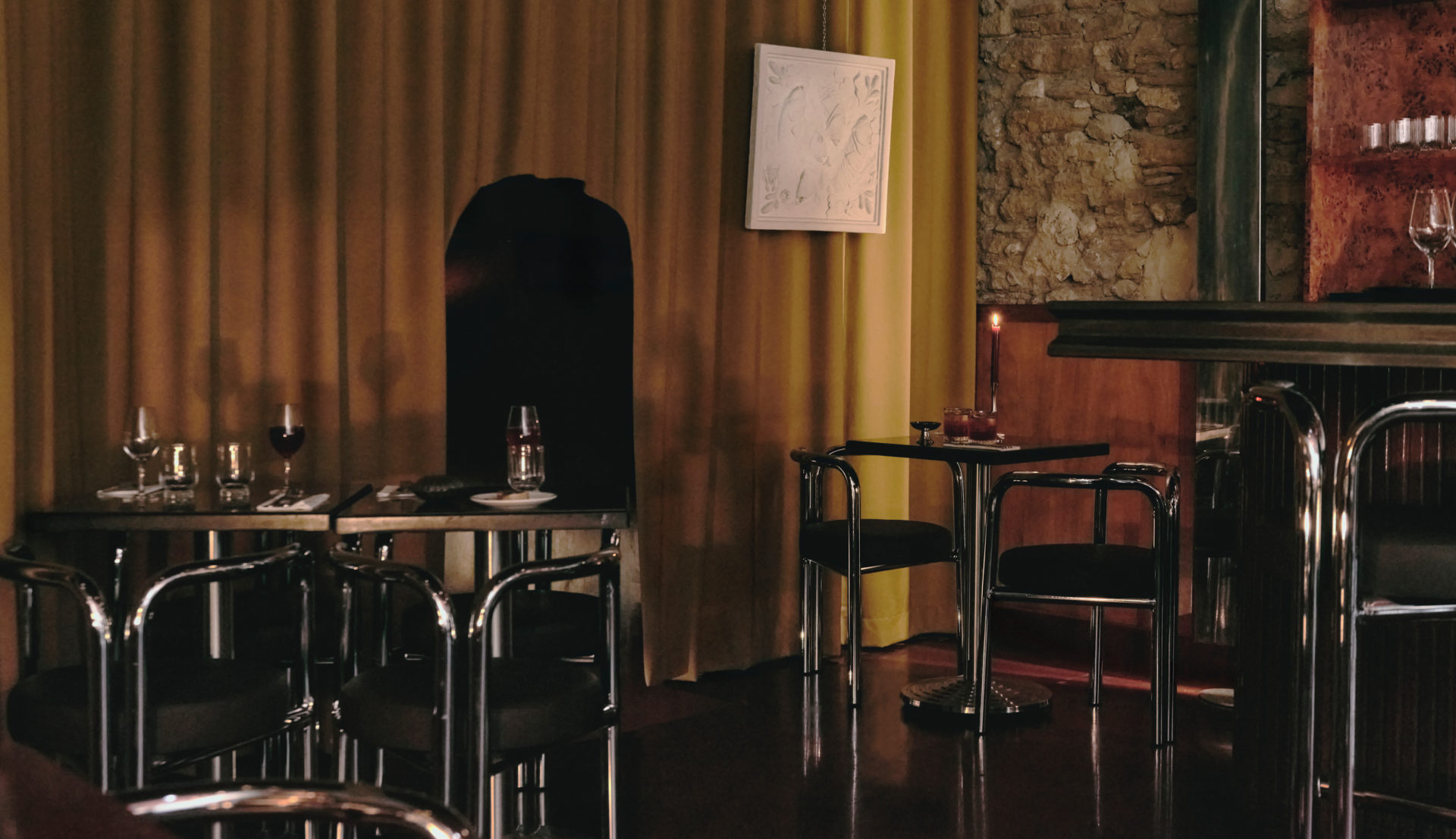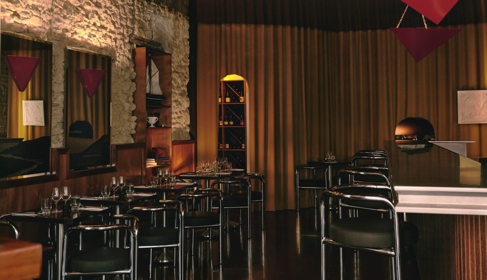 Chez Devo, on ne « rentre » pas : on fait son entrée. Premier projet d’architecture d’intérieur signé à quatre mains par Axel et Mélissa Chay, le restaurant-bar convoque l’esprit des ciné-clubs des années 70. Une atmosphère lynchéenne savamment traversée par les codes de la nouvelle scène marseillaise.