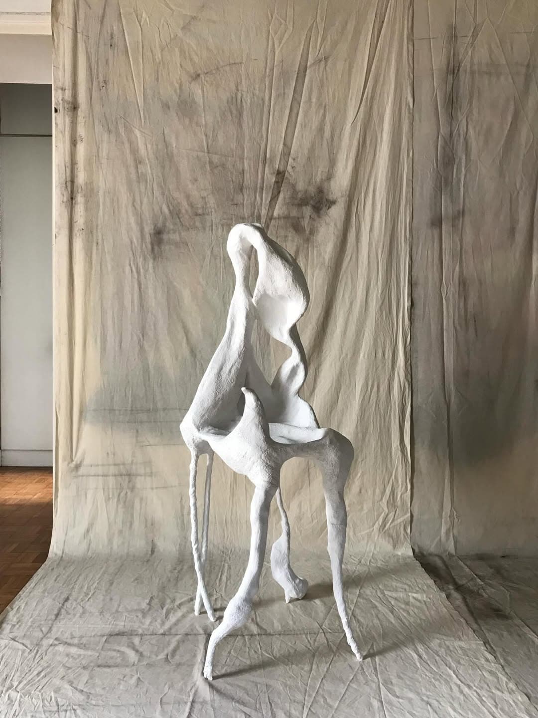 Vernissage – À l’occasion de l’exposition personnelle du peintre Claudio Massini à la galerie Chloé Perrin, l’artiste Karina Rikun présente pour la première fois l’une de ses assises sculpturales, habillée de plâtre. Cette pièce d’orfèvre, à la fois fragile et monumentale, s’impose dans l’espace de l’exposition « Le Temps Rebelle ».