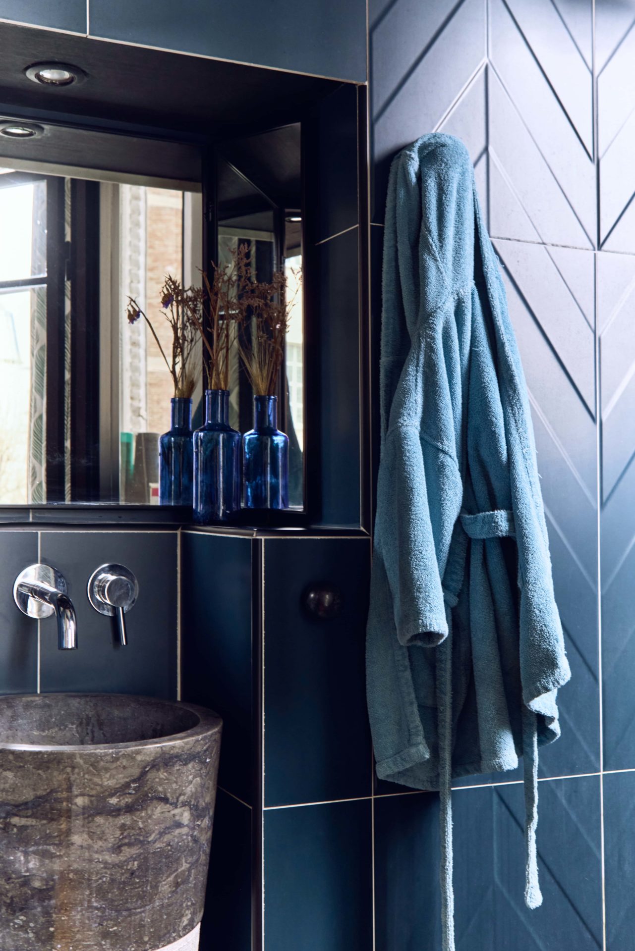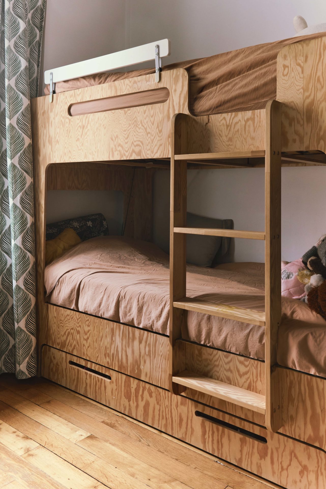 L’entrée, avec son bleu nuit, donne le ton. Elle se compose de niches, de rangements, d’un banc pour se chausser, et relie savamment chaque espace. Au centre, le grand salon et la cuisine, traversés par la lumière, séparent les pièces plus calmes postées de chaque côté : une suite parentale avec son dressing et sa salle de bain, et une seconde chambre équipée d’une petite salle d’eau en angle. Le charme de l’ancien, avec son parquet d’origine préservé, unifie le tout. L’Haussmannien, n’a jamais été aussi élégant et malin. Une perle immobilière, dénichée par l’agence Junot, en vente juste ici sur leboncoin.