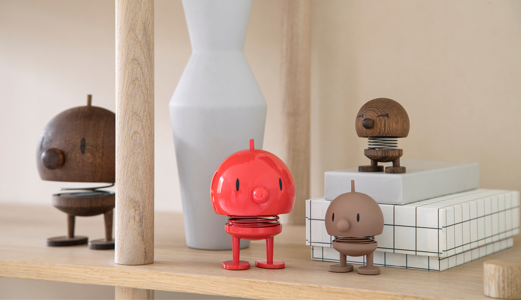 Hoptimist. Tout est dans le nom. Ces petites figurines, baptisées Bimble et Bumble, ont fait leur apparition à la fin des années 60 et se sont aussitôt imposées comme des symboles de bonne humeur avec leurs têtes expressives reliées à des pieds trapus par des ressorts. Chacun a sa personnalité : Bimble, l’optimiste au sourire espiègle et à la robe légère, et Bumble, son complice coiffé d’un petit chapeau haut.