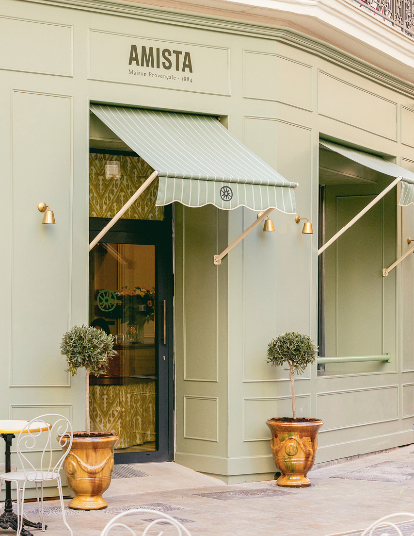 C’est dans l’ancien Hôtel Saint-Louis, entièrement revisité par le groupe Ginto (Hôtels Paradis, Pilgrim à Paris), que se cachent ces deux nouveaux repères marseillais. En provençal, Amista signifie « amitié ». Une valeur que l’architecte d’intérieur Dorothée Delaye a traduite en un décor chaleureux et voyageur. Les vingt-quatre chambres et le restaurant respirent l’esprit de famille : meubles chinés, objets rapportés de voyages, tissus exclusivement signés Élitis… Un décor habité, pensé comme une maison provençale d’antan.