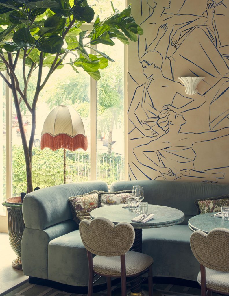 L’édifice, qui était autrefois une villa privée, renaît de ses cendres grâce au savoir-faire hors pair du duo créatif. L’histoire de l’île italienne a grandement inspiré les propriétaires dans le choix des matériaux, comme dans celui de la palette chromatique. La présence du rose poudré rappelle ainsi la roche volcanique du Vésuve. Un aspect minéral contrasté par les matières organiques choisies pour la conception du mobilier.