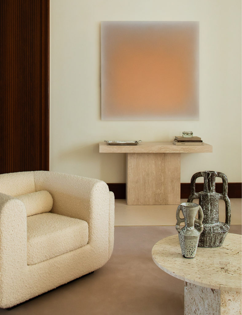 Le Floor se niche juste en face du célèbre Palais Brongniart, dans le quartier de la Bourse. Comme déjà trois des espaces de The Bureau, c’est Marika Dru de l’atelier MKD, qui signe l’intérieur. Celle-ci invite d’ailleurs les colonnes du Palais à l’intérieur, clin d’œil à l’édifice construit à l’instigation de Napoléon Iᵉʳ. Le tout baigne dans une atmosphère typiquement parisienne. Immersion dans l’univers de The Bureau : intimiste, élégant et résolument accueillant.