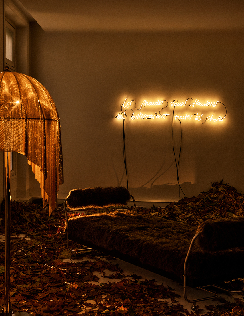 À côté des grands formats, des initiatives plus confidentielles mais tout aussi pointues ont rythmé la semaine. La deuxième édition du Mignon Show orchestrée par Mignon Yu et Graziella Semerciyan dans un sublime appartement du 6ᵉ arrondissement, ou encore Un Souffle de Vent, dialogue automnal entre Dimorestudio et Yves Salomon Editions. Sans oublier le retour du festival Contributions, et ses cinq installations disséminées aux quatre coins de Paris, explorant cette année la musicalité. Tous ont fait résonner l’avant-garde.