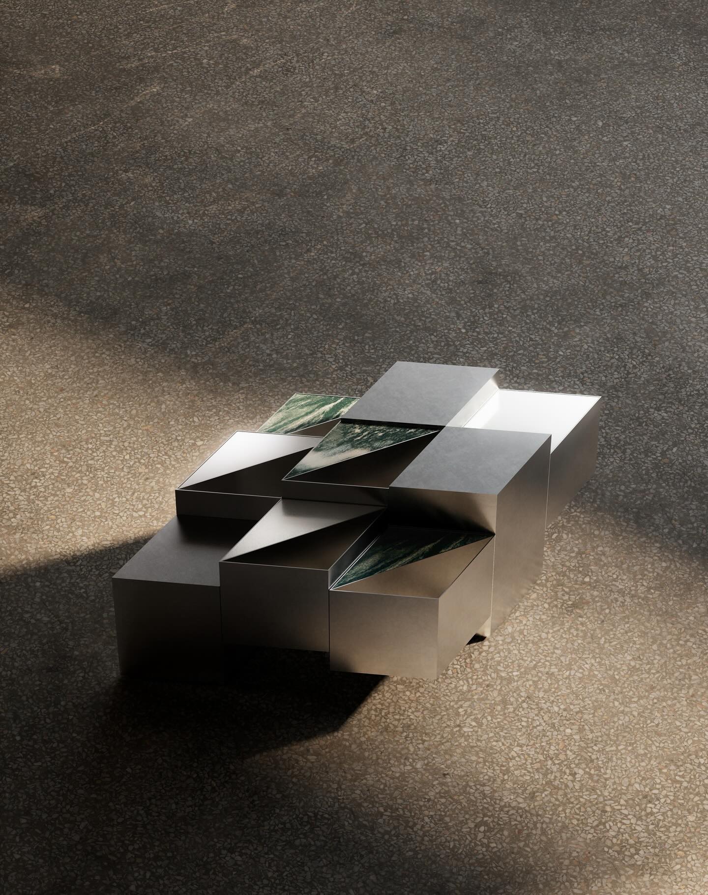 Table en acier et marbre par Lavinia Fuksas et Pietro Franceschini, Mondavili Scagliola Gallery