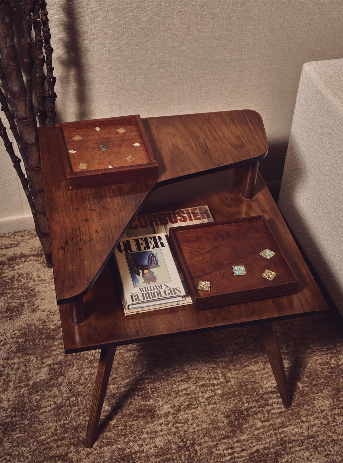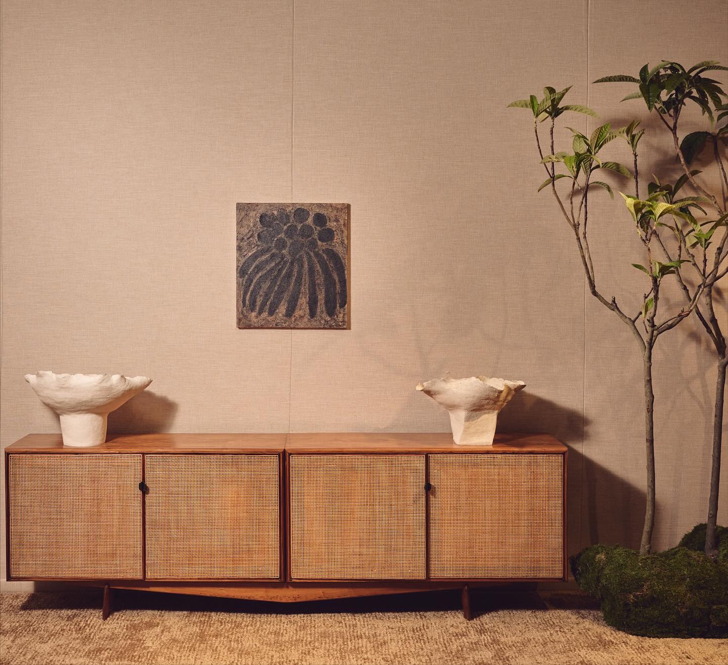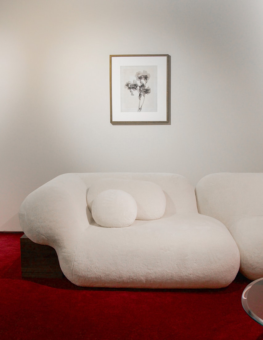Fondée par Luiz Kessler, originaire de Rio de Janeiro et installé à Londres, la galerie JCRD Design se distingue par sa sélection exigeante de mobilier brésilien du milieu du XXe siècle, mettant en lumière les figures majeures du modernisme tropical. Pour sa troisième participation au PAD London, elle réunit des pièces emblématiques de Joaquim Tenreiro, Martin Eisler, Joe Armitage, Rafael Triboli, Solange Pessoa ou encore Sérgio Rodrigues. À ce panorama brésilien s’ajoute une touche singulière : celle de l’Américain Brett Robinson. Né à Manhattan Beach, passé par l’architecture d’intérieur et le studio de Ralph Lauren, il fonde son propre atelier en 2015. Ses poufs en aluminium poli, habillés d’un revêtement en alpaga, sont présentés ici pour la première fois en Europe.
