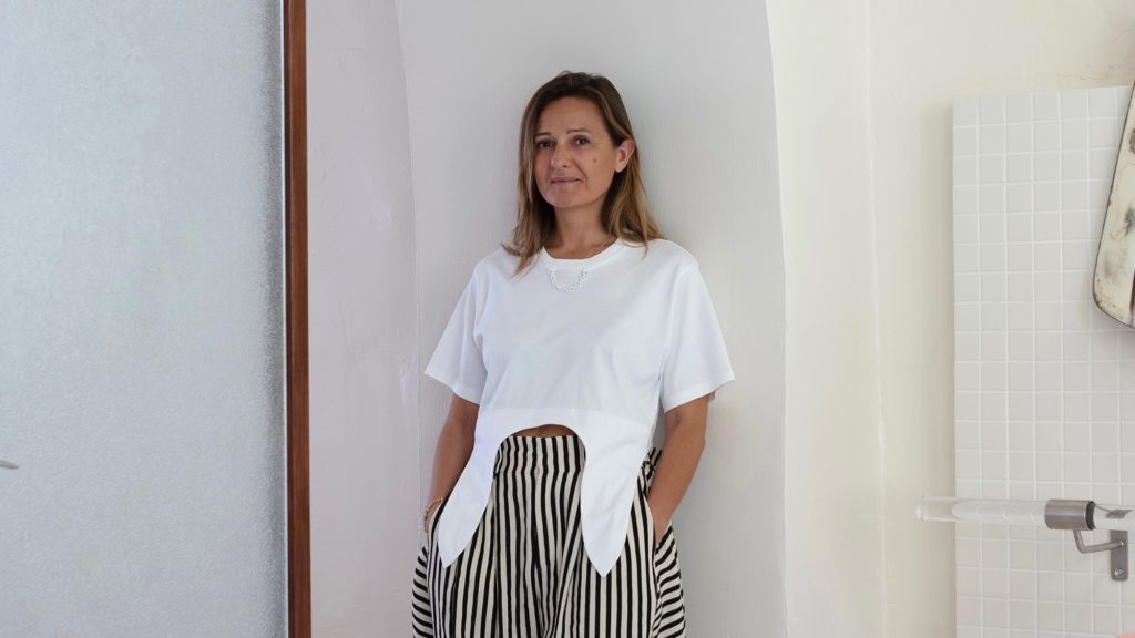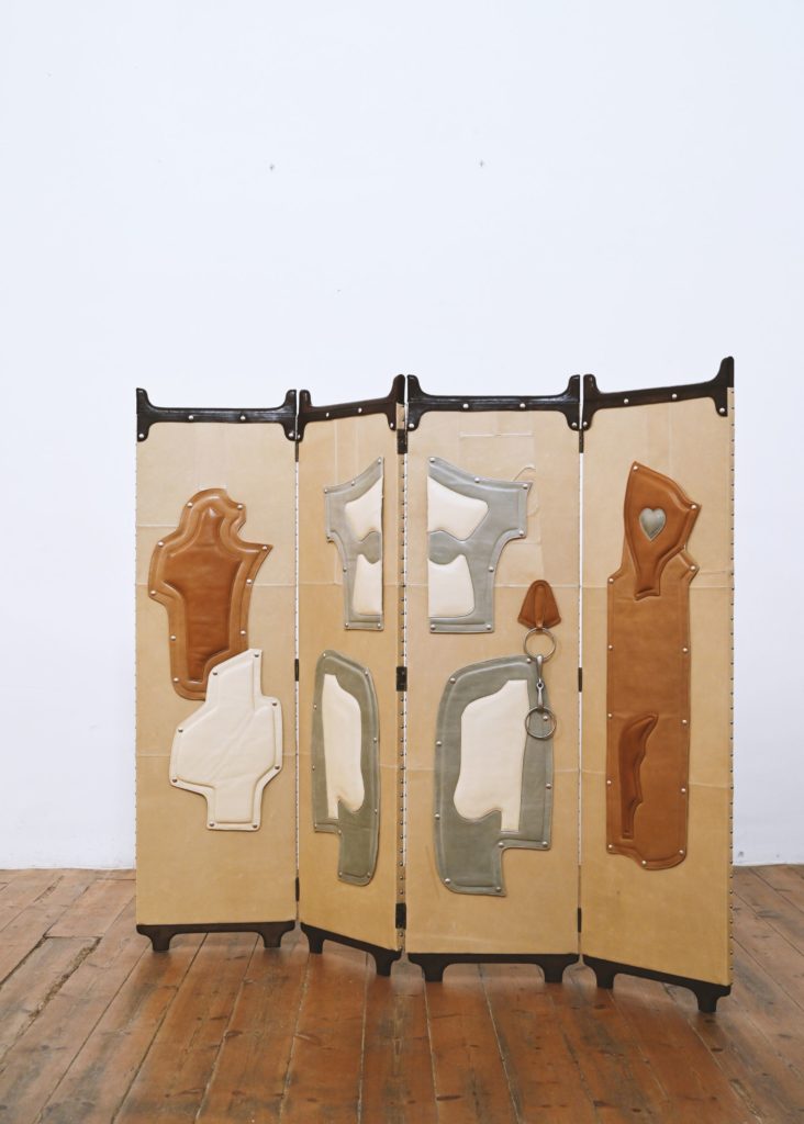 Lauréate du Prix du Mobilier National et de la dotation de la Fondation Carmignac, Anaïs Fernon plonge avec « À la fraîcheur de la situation », cette pièce du deuxième étage de l’ancien Évêché, frappée par le soleil, dans une oasis de fraîcheur. Malgré son orientation plein Est, la salle se refroidit naturellement grâce à un rideau de perles provençal en deux couches : une moustiquaire avec des pampilles d’aluminium miroir pour refléter les rayons du soleil et un rideau de cordons de lin réalisés grâce au soutien de l’Alliance du Lin et du Chanvre Européens, ainsi que des barrettes de terre cuite chaulées humidifiés par goutte-à-goutte. L’air traversant se rafraîchit en douce brise au contact de l’eau et du sol en faïence émaillée.