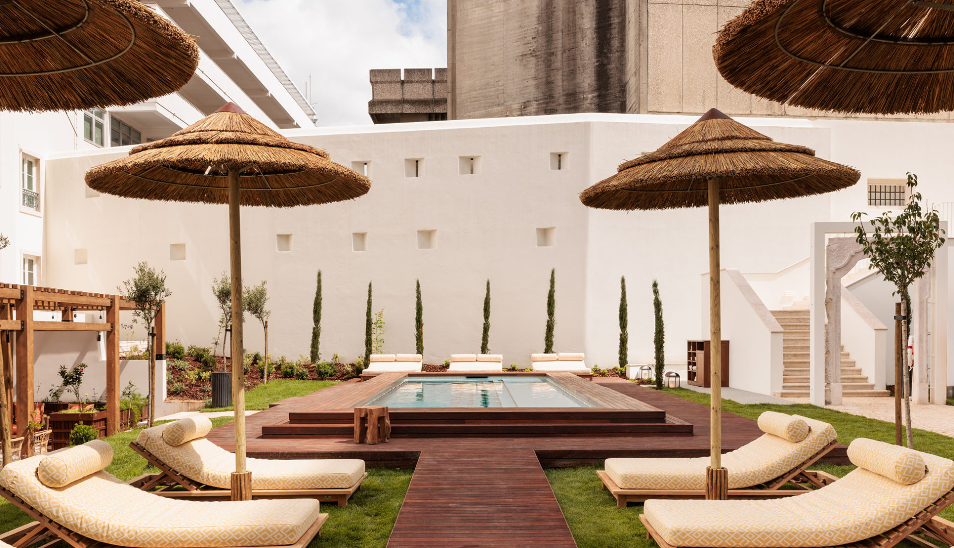Côté table, Locke Santa Joana s’impose comme une destination à part entière, avec cinq restaurants et bars qui célèbrent la scène culinaire méditerranéenne. À la brasserie Santa Joana, guidée par le chef portugais Nuno Mendes, la cuisine ibérique se réinvente avec esprit : homard, cocktails et plats de poisson singuliers. Dans la cour, Santa Marta, mi dedans mi dehors, ouvre sur la piscine et déroule une carte italienne, des tagliatelles au citron à la pizza piccante cuite au four à pâte fermentée. Les amateurs de spiritueux trouveront refuge au bar Kissaten, qui revendique la plus vaste collection de whiskies de la ville, quand O Pequeno joue la carte d’un bar à champagne et martinis, intime et feutré. Et pour la touche sucrée, Castro’s et ses pasteis de nata complètent le tableau. Bienvenue à Locke Santa Joana.