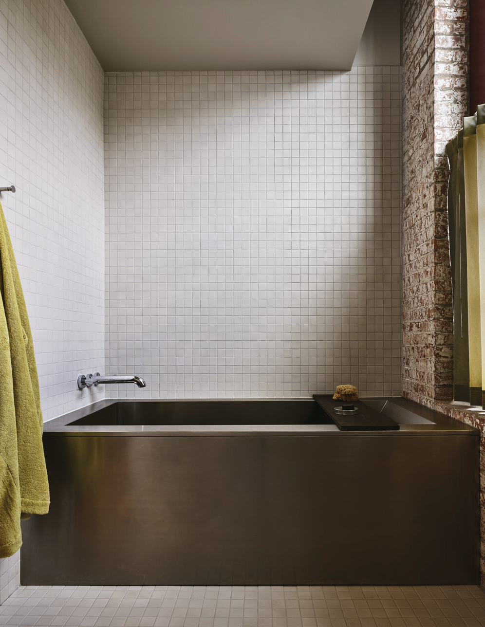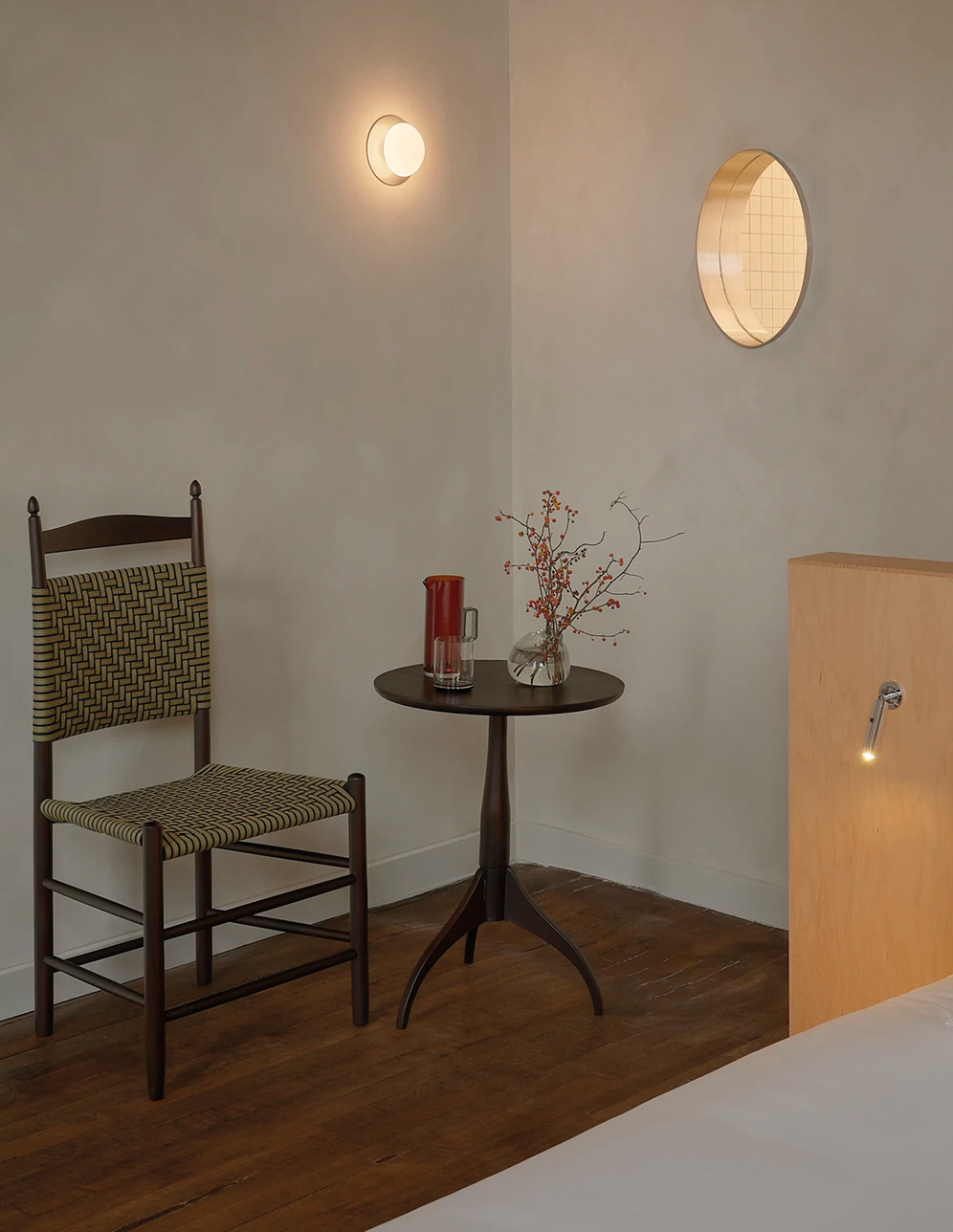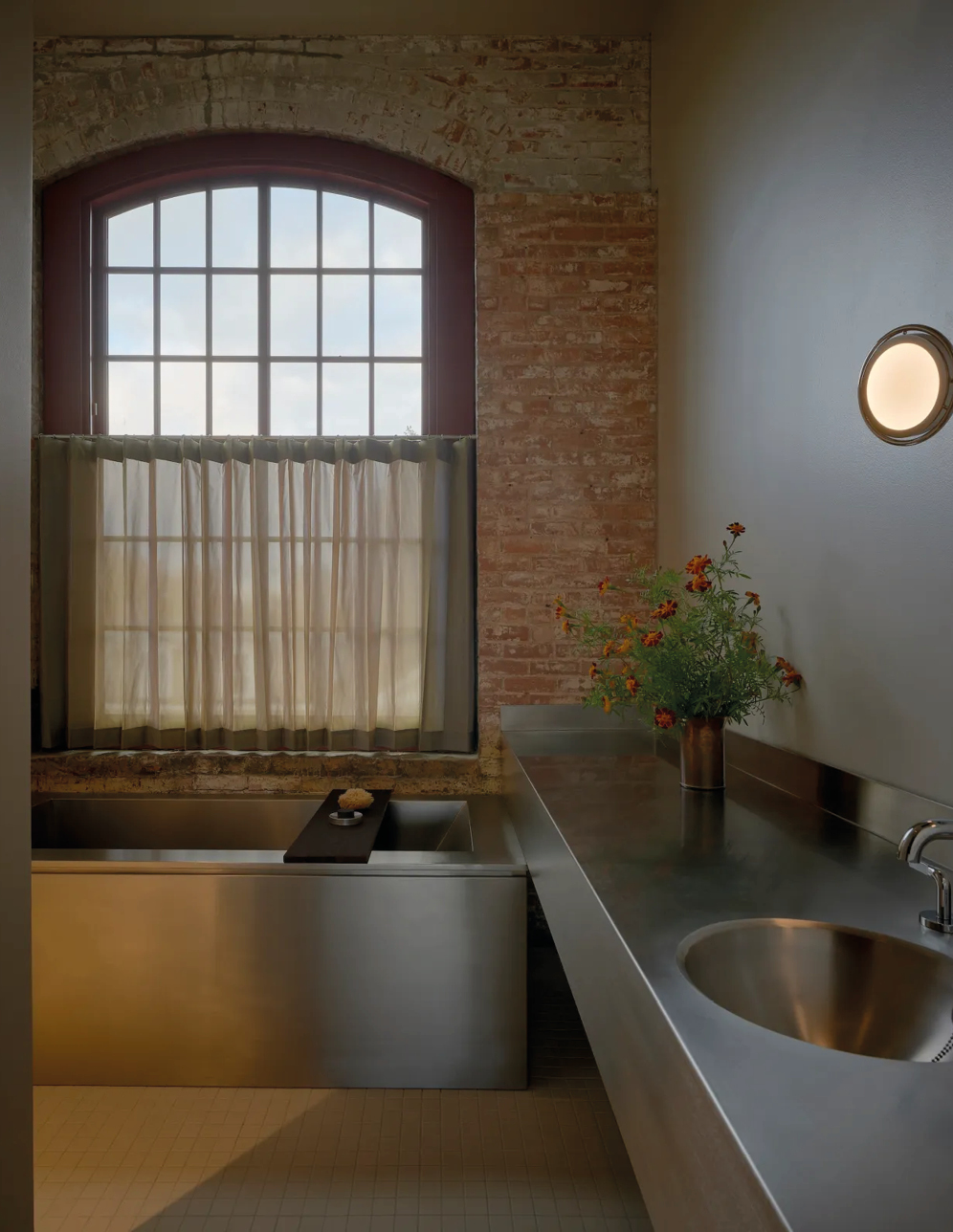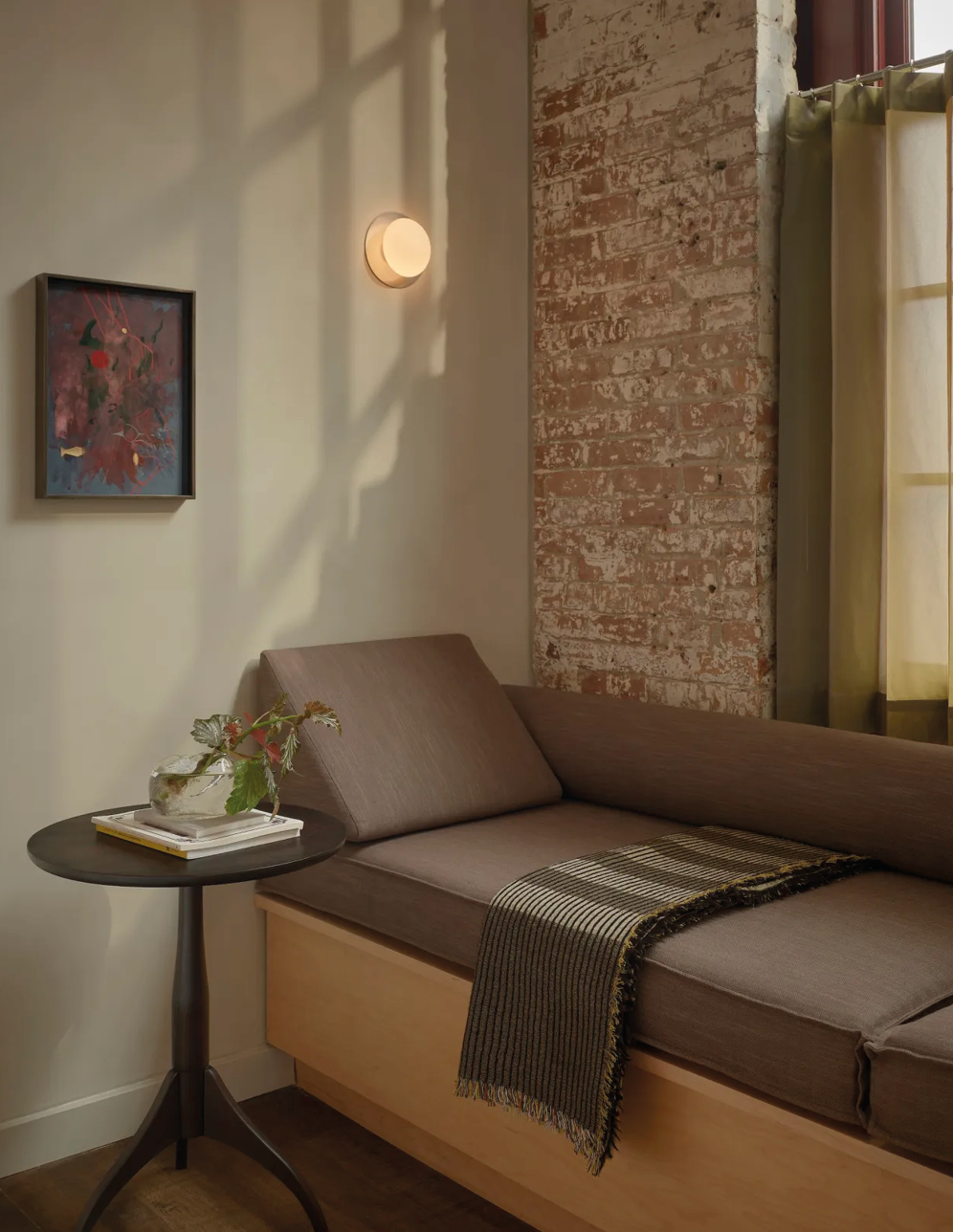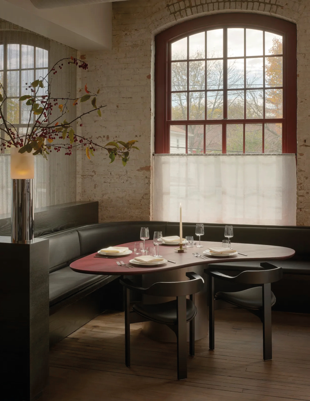 Pocketbook Hudson fonctionne comme une mini-ville créative : quarante-six chambres, une boutique Kasuri (concept-store new-yorkais aux références ultra pointues), des friperies bien sourcées, un nightclub, un restaurant dédié à la fermentation et, bientôt, un établissement de bains. Le lieu fait aussi office de hub d’art et de design contemporain, avec une sélection de designers et de galeries affûté où dialoguent Misha Kahn, Jacqueline Sullivan, Rich Aybar… Les intérieurs signés Charlap Hyman & Herrero orchestrent la rencontre entre héritage brut et raffinement discret : briques d’origine, mobilier en bois épuré, textiles doux, acier minimaliste et détails manifestes comme les cottes de mailles suspendues au restaurant. Un condensé de l’esprit Hudson : industriel, culturel, accueillant et vivant.