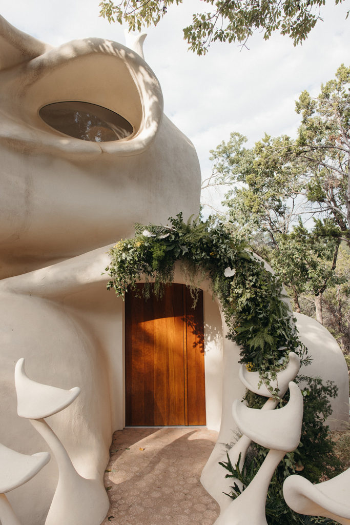 Trois chefs-d’œuvre de John Lautner s’invitent notamment à l’écran : la Carling House perchée dans les Hollywood Hills, la Silver Top dominant Silver Lake, et la Harvey House nichée à Los Feliz. Non contente de curateur les lieux de tournage, elle a aussi imaginé pour le studio Warner Bros, le siège fictif des Continental Studios : un décor néo-maya inspiré de l’Ennis House (1924) de Frank Lloyd Wright. Pensé comme un « temple du cinéma » érigé en 1927, le bâtiment a été construit en six semaines à peine, avec ses blocs textiles, ses lignes horizontales et ses volumes en porte-à-faux qui semblent flotter.