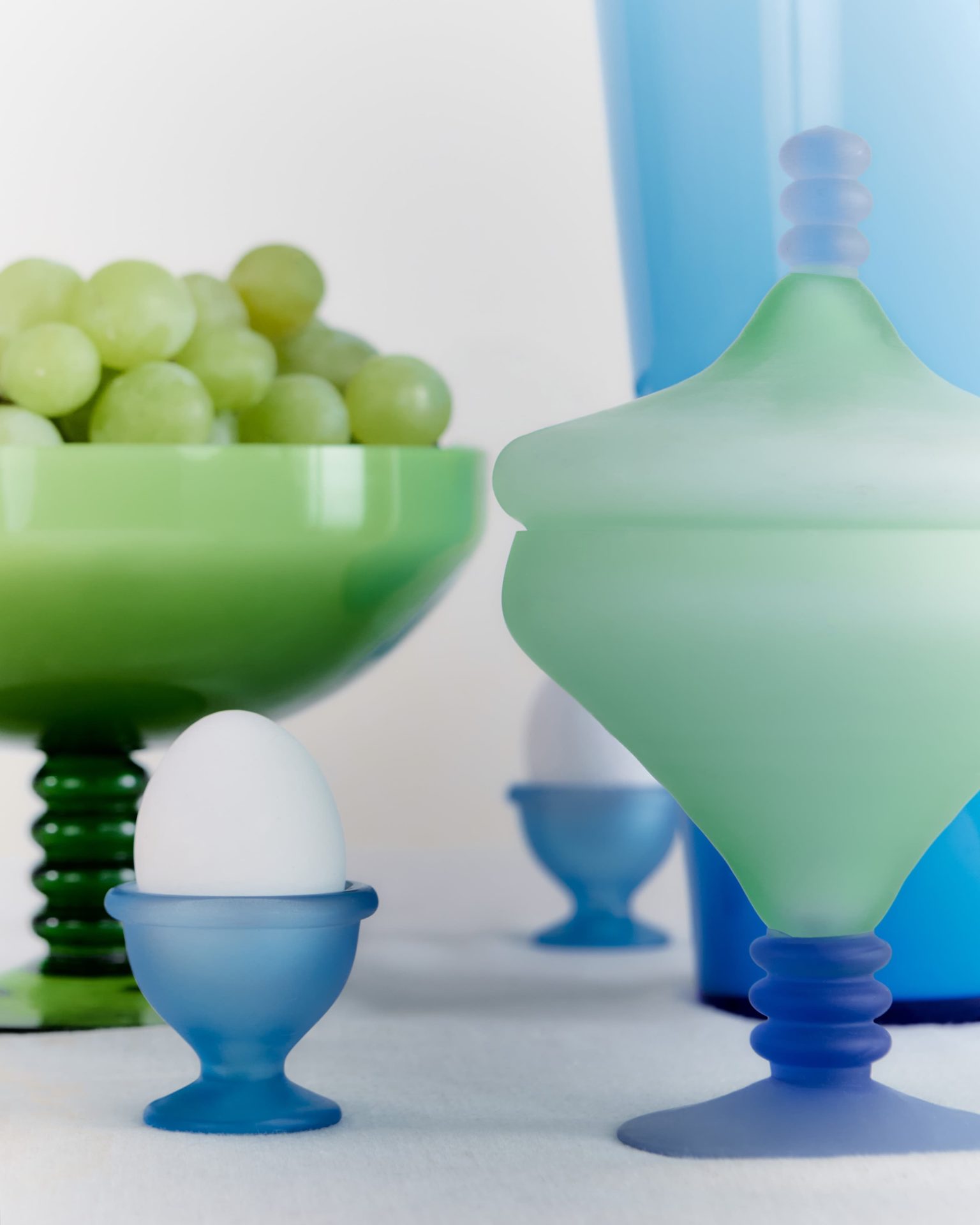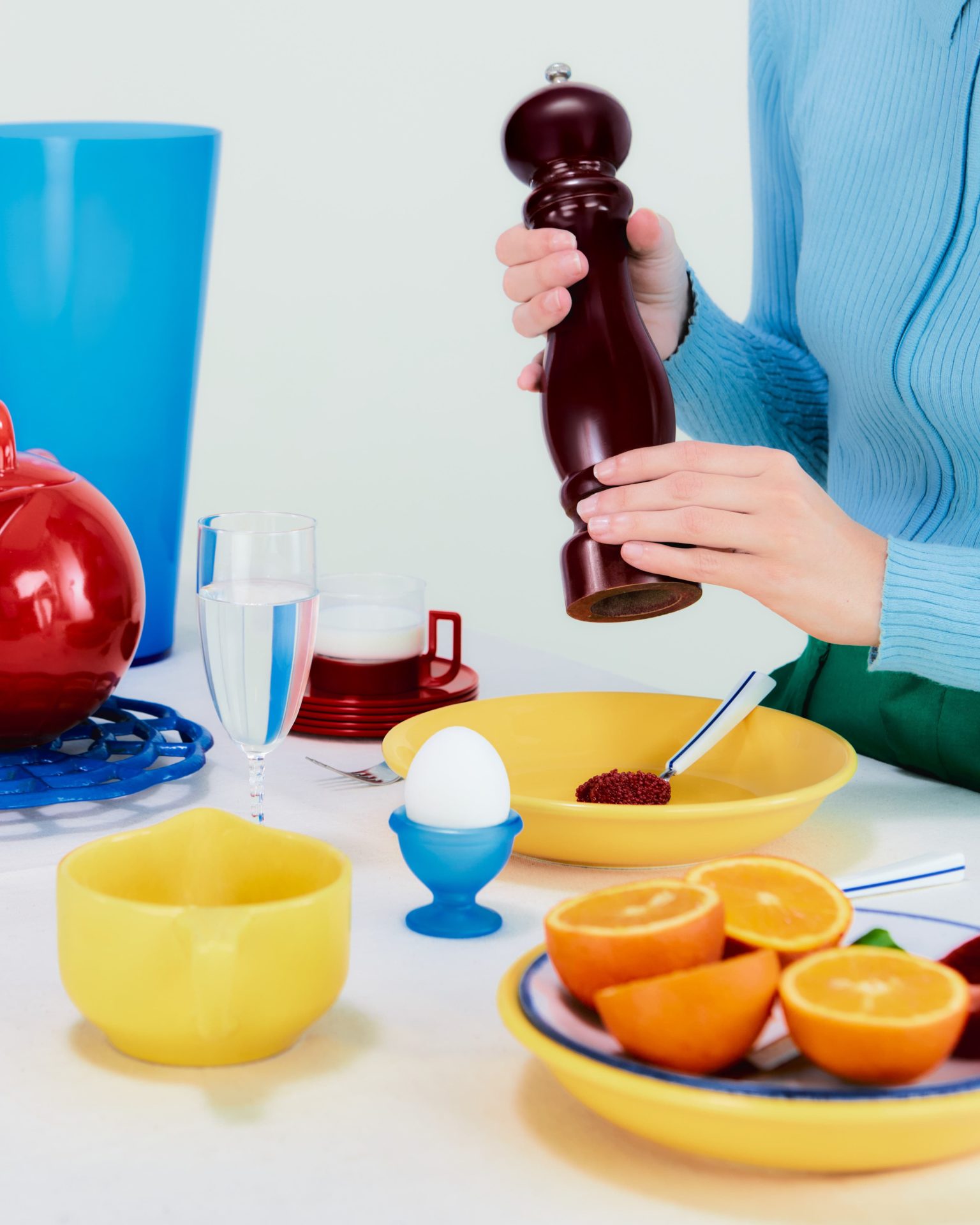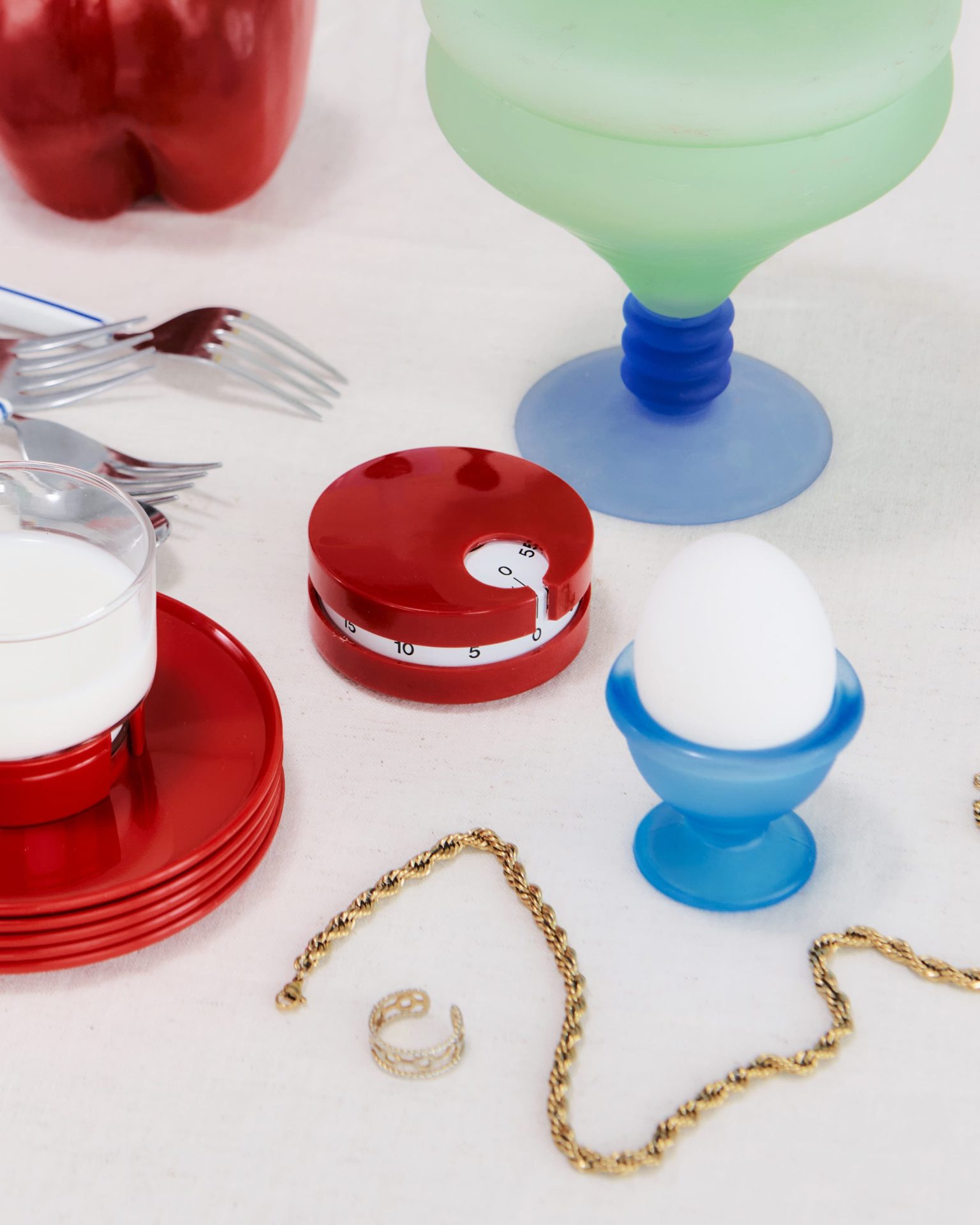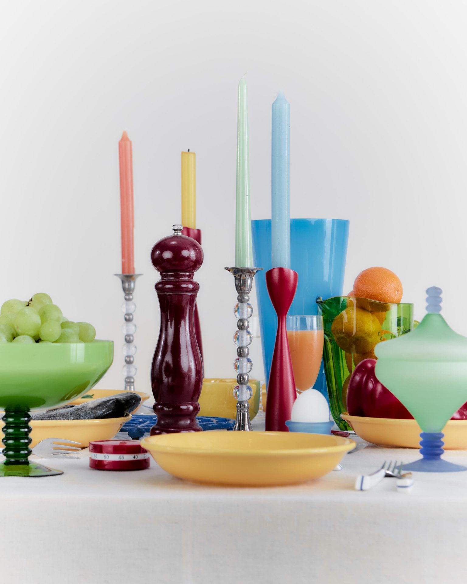 Des codes rétro qui font parfaitement écho à l’idée d’une table de Noël vintage. Flacon Moretti bicolore, couverts Air France blancs à liseré bleu, téléphone à touches rouge cerise, moulin à poivre en bois brillant, coquetiers givrés bleus… Le Murano, la laque et le plastique eighties, toujours hautement colorés, sont en majesté, et se conjuguent à la seconde main sur leboncoin. ¡Feliz navidad!