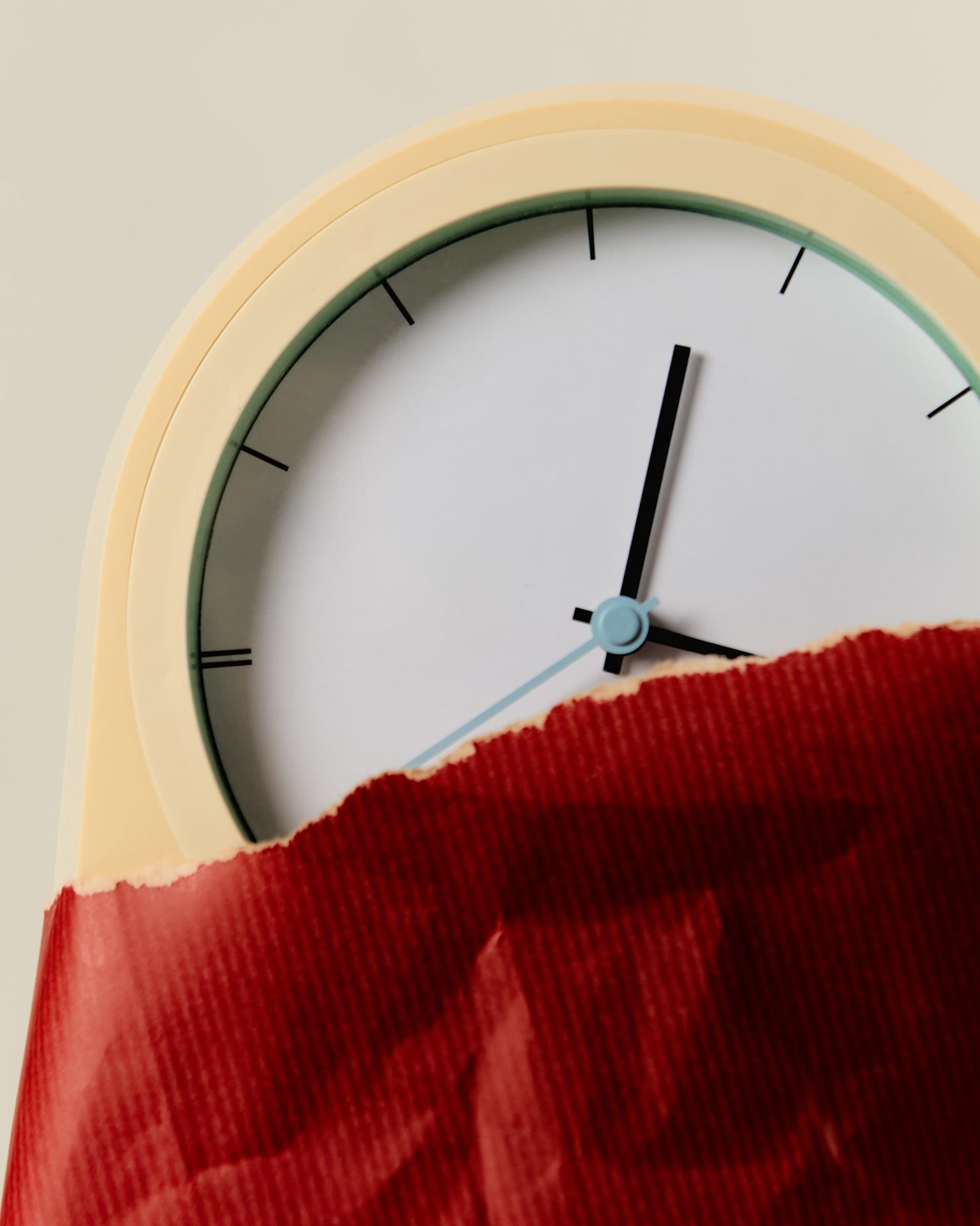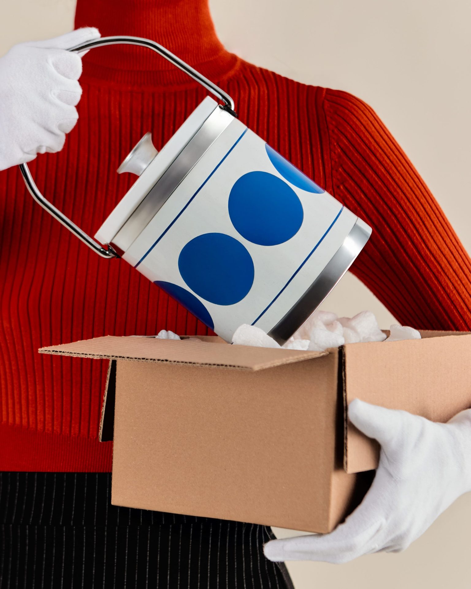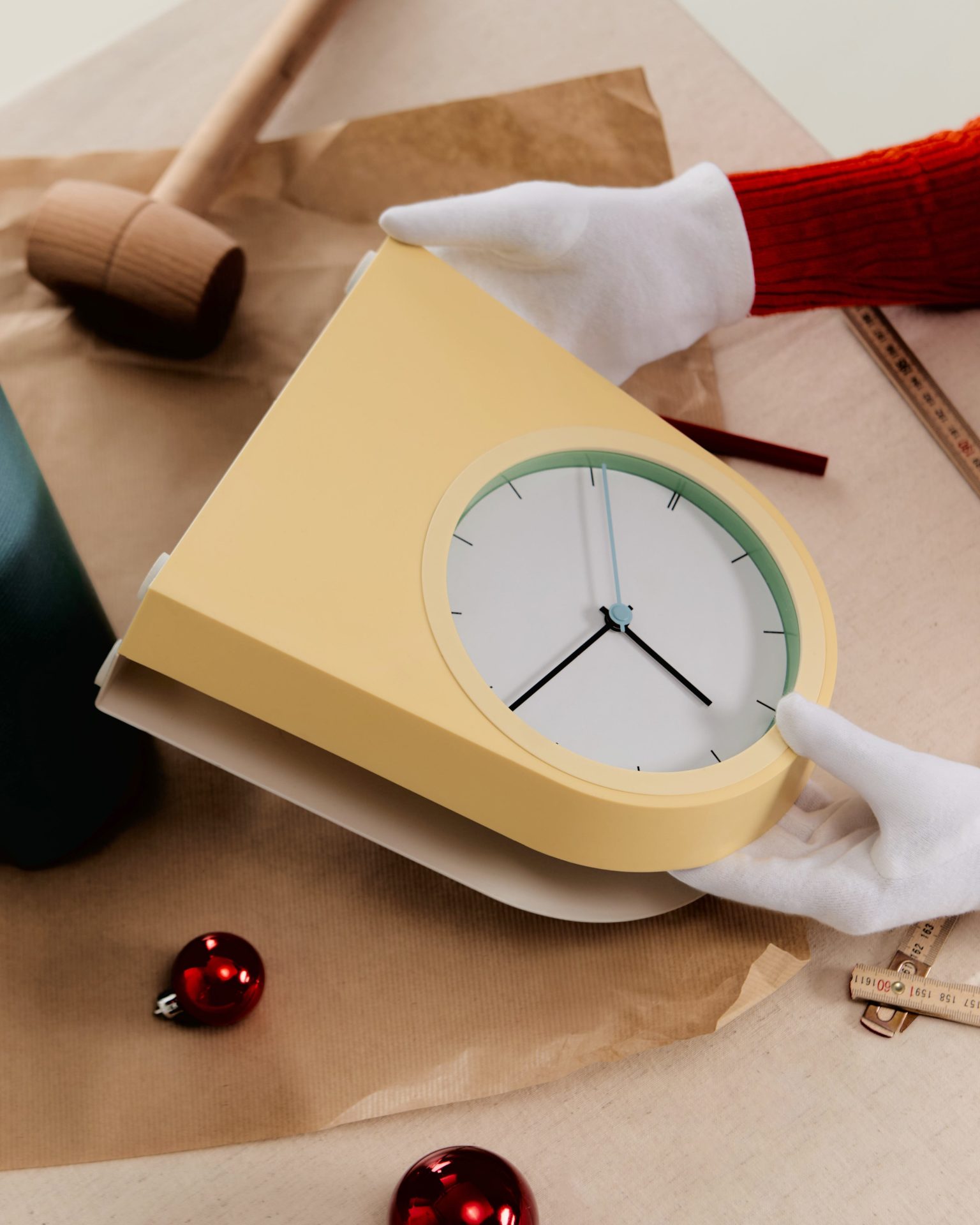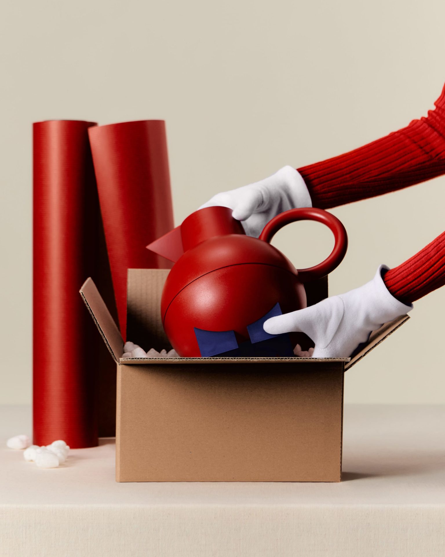 Dans ce joyeux chaos, des objets de design vintage émergent : une cafetière-thermos Alessi, un cheval à bascule en bois multicolore, une lampe de bureau articulée dans le style Memphis, une lampe Bambina rouge, un seau à glace 70’s, une horloge POFFARE d’IKEA… autant de trésors inattendus de seconde main, prêts à être chinés sur leboncoin avant leur grand voyage.