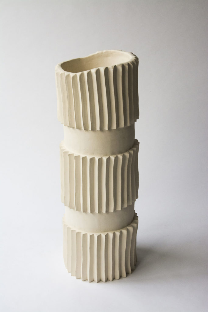 Dans une démarche ludique et intuitive, axée sur un processus de création plutôt que sur des résultats précis, ses pièces vacillent entre design et artisanat. Toujours dans une sensibilité plastique unique, il imagine ses créations avec des matériaux tel que l’aluminium, la céramique, l’argile et encore le silicone.