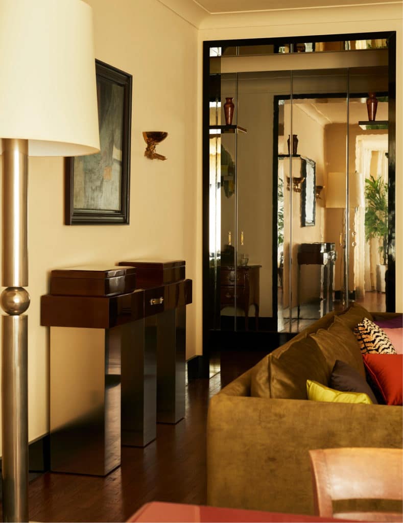 Aurélien Raymond et Costanza Ross, le duo d’esthètes à la tête du studio, ont la laquemania. Ils usent des matières réfléchissantes (acier inoxydable satiné, laiton poli) et des matériaux aux finis shiny (noyer américain laqué, acajou verni, ivoire) pour souligner l’esthétique glossée-raffinée des twenties et des seventies. Décennies charnières pour les Arts Décoratifs, elles twistent leur travail au quotidien.
