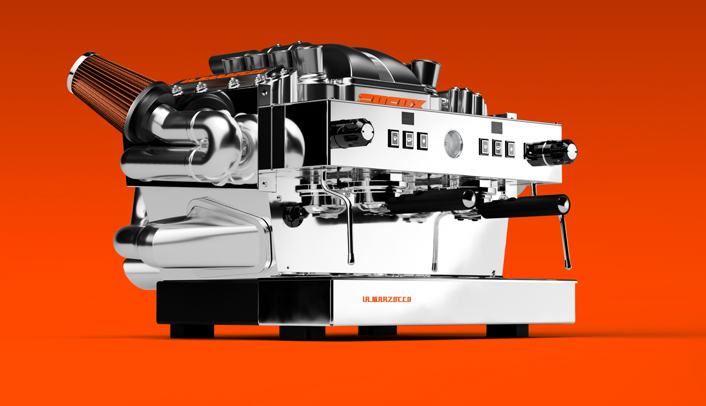 Tout est parti d’un objet-manifeste : le SUCUX V8, un casing destiné à habiller les machines La Marzocco Linea Classic S. Inspiré des moteurs de voitures de sport, il multiplie les clins d’œil à l’automobile : échappements, filtres à air et collecteurs revisités, porte-tasses transformés en bougies. Les pièces sont imprimées en 3D et polies comme des bijoux, fixées magnétiquement au boîtier, propulsant la machine dans une allure sculpturale, mi-engin, mi-œuvre d’art.