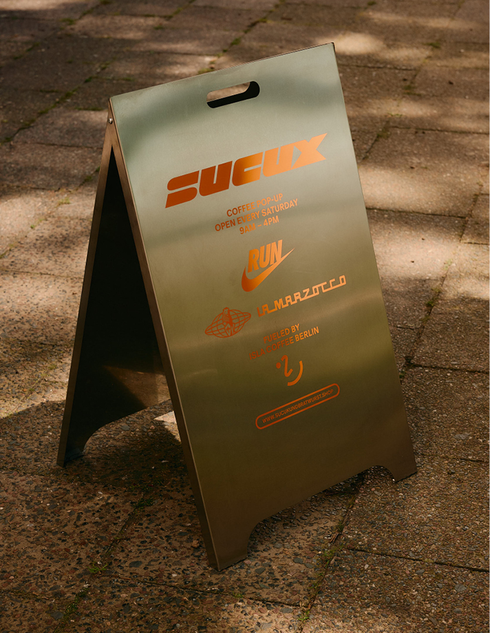 Pour la dévoiler, SUCUX a ouvert un coffee shop à Strausberger Platz. Là-bas, chaque détail donne dans la mécanique : pneus détournés, t-shirts siglés façon F1. Chaque samedi matin, les visiteurs y découvrent l’objet en action, autour de cafés ISLA, carburant servi dans des tasses KPM Berlin. Coup d’accélérateur final ? Une collaboration avec Nike Running, qui a invité son club de coureurs à lancer les festivités. Aucun red flag en vue.