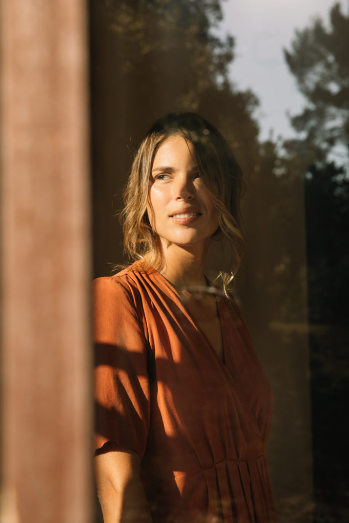 « La technique très ancienne du verre églomisé, qui consiste à insérer une feuille d’or ou d’argent sous le verre, a aussi été remise au goût du jour avec l’intervention de la fresquiste Solène Eloy (L’Atelier du Mur). Les appliques en plâtre elles côtoient un mobilier réalisé en bois et loupe de noyer. »